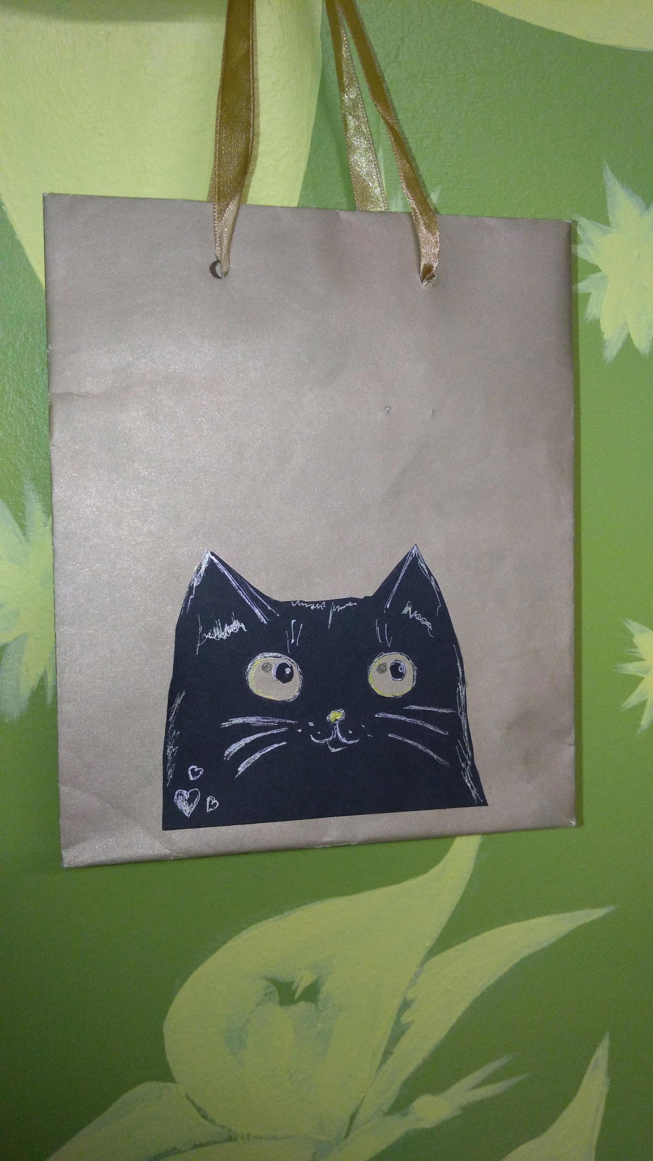 Тот случай, когда замотан и забеган выше крыши, за выходные и не присев толком, но всё равно проще за 5 минут скрафтить кото-аппликацию на простой подарочный пакетик "без никто", чем отыскать и купить подходящий.