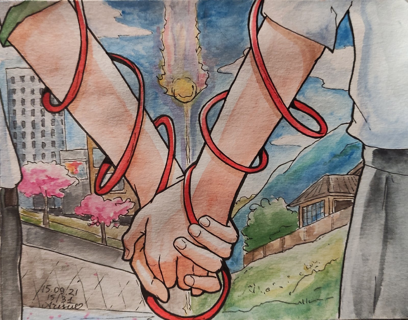 Аниме-челлендж: "Твое имя" Автор: Arisu Таки и Мицуха из "Твоего имени", точнее, некая их часть..) Акварель. традишка, акварель, аниме 396 Пожаловаться