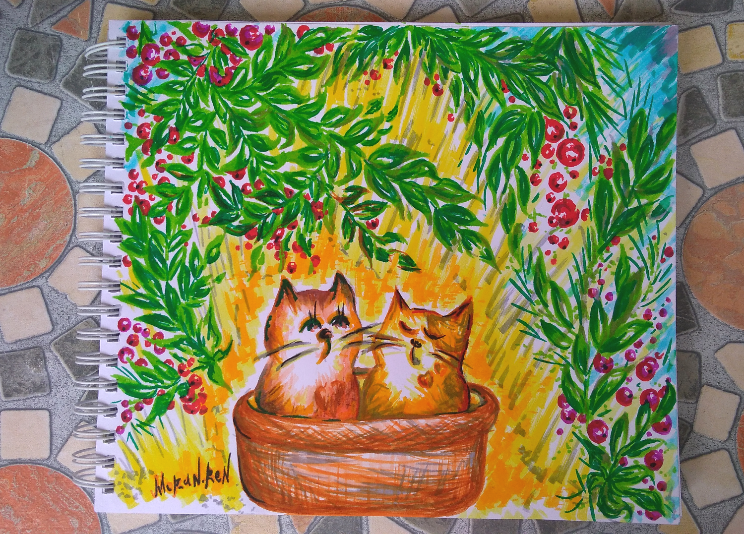 Была у меня уже песенка: ах, как котики, да в корзиночке... И рисунок к ней.