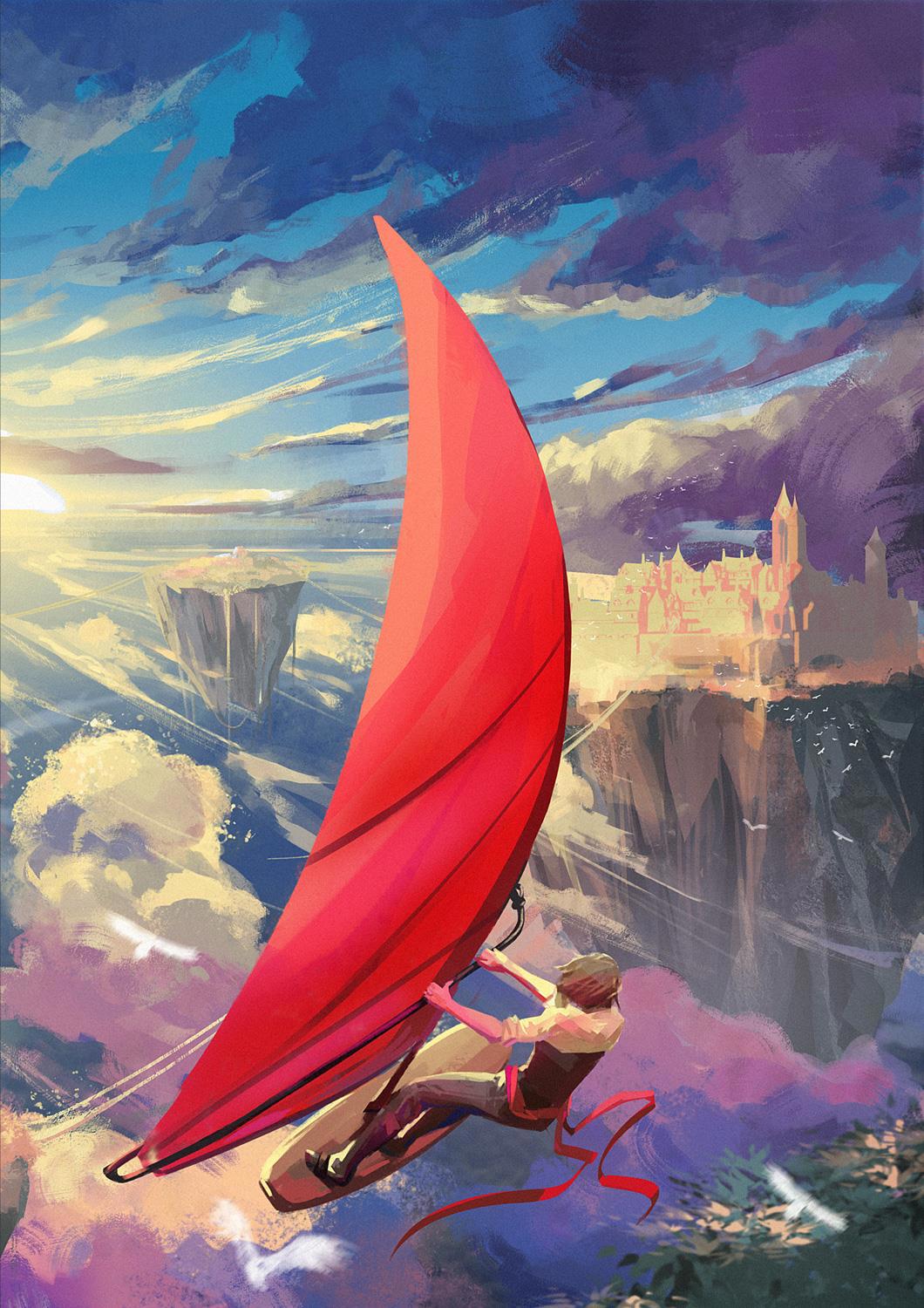 Полёт Автор: Юлия Жданова Иллюстрация на обложку для Алены Волгиной - "Воланте. Ветер перемен" иллюстрация, летающий город, персонаж, арт, фэнтези, полет, облака 571 Пожаловаться