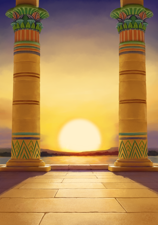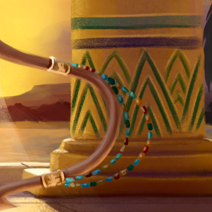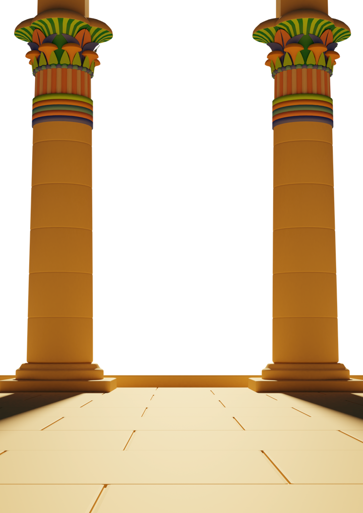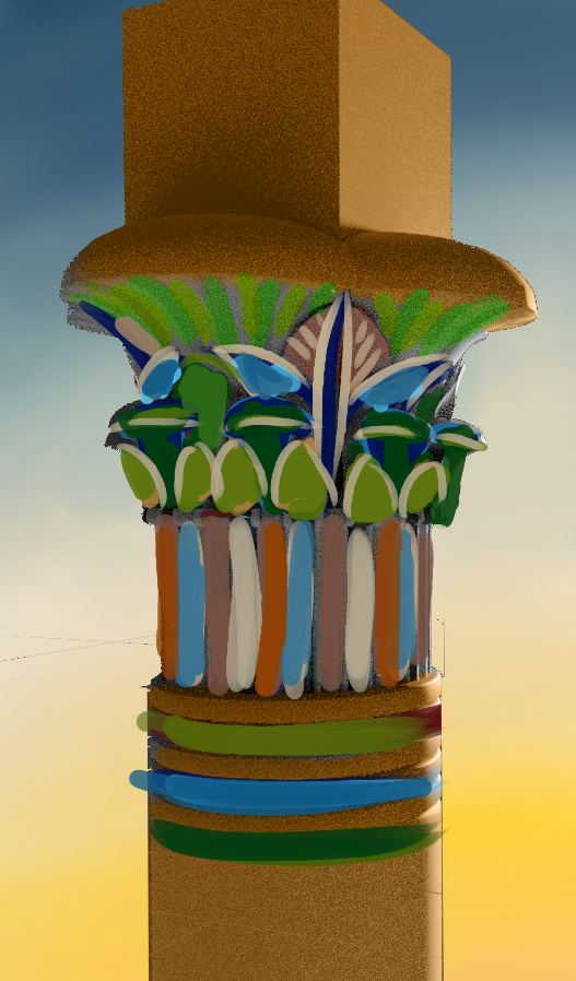 По рендеру с цветом базового материала подбираем раскраску. Задача, как ни забавно, оказалась одной из самых муторных. Египтяне предпочитали много ярких красок, и подобрать их так, чтобы было одновременно пёстро и гармонично, оказалось сложно.
