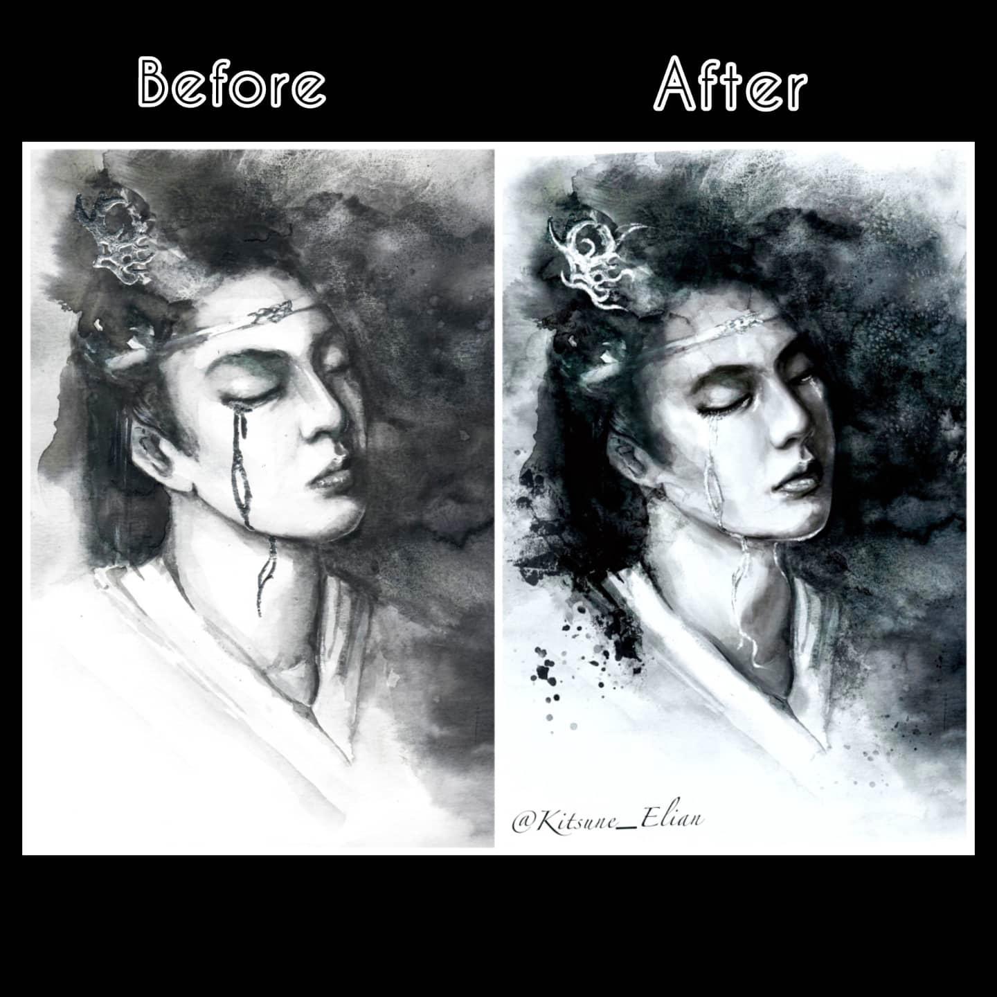 Испробовала новую для себя технику: поверх акварельного скана (акварель+серебристая поталь) доработала рисунок в дидже .