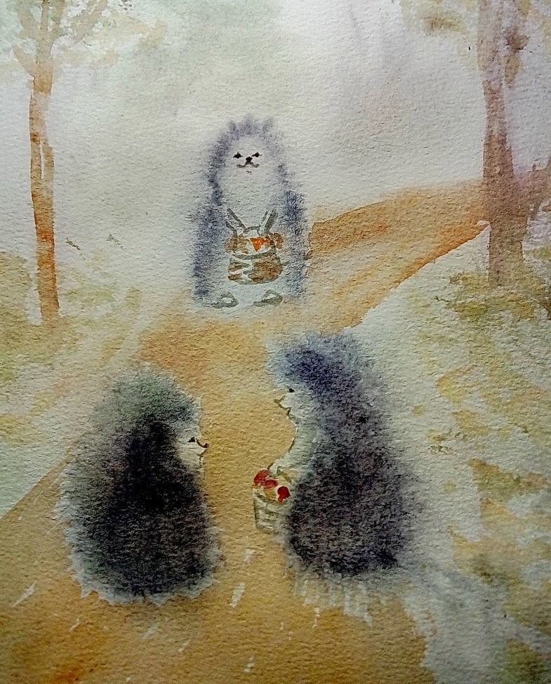 Ёжики. Акварель. Автор: Ольга Левонович Подарила картинку детской писательнице, у неё стихов про ёжиков - полным-полно. акварель, иллюстрация, ёжики 357 Пожаловаться