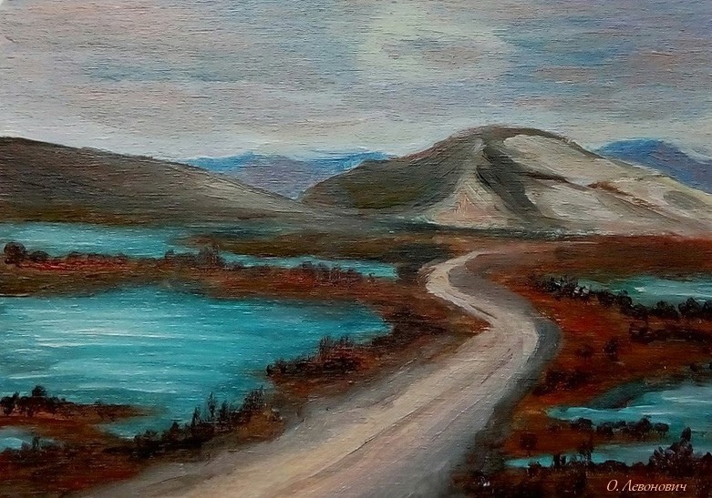 Миниатюрка маслом на дощечке, 10х15. Я обычно миниатюры эти продаю, но эту решила оставить. Нравится цветовая гамма. Пробовала повторить - не смогла точно воспроизвести цвета, получилась совсем другая картинка.