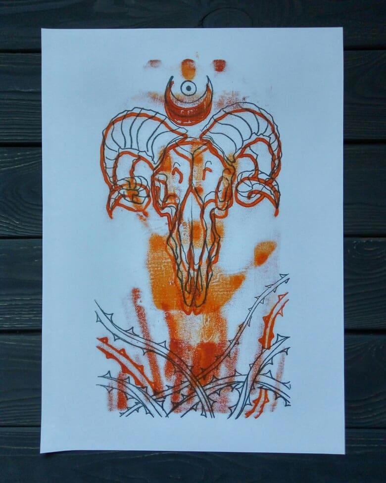 Нынче я в гостях у друзей в Москве, а друзья у меня люди творческие, поэтому собираясь вместе мы осваиваем всякие новые стили и техники. В данном случае это монотипия.