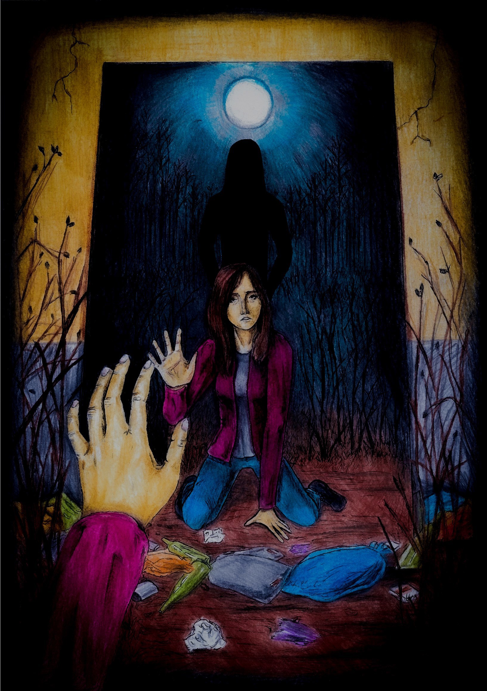 Настя дошла до ручки. Гелевой, с чёрной пастой. Охотнице до ярких контуров вздумалось испытать себя на чёткость линий капризными чернилами. Вздумалось нарисовать обложку, не только лишь цветными карандашами. Разрешить картинке быть.
