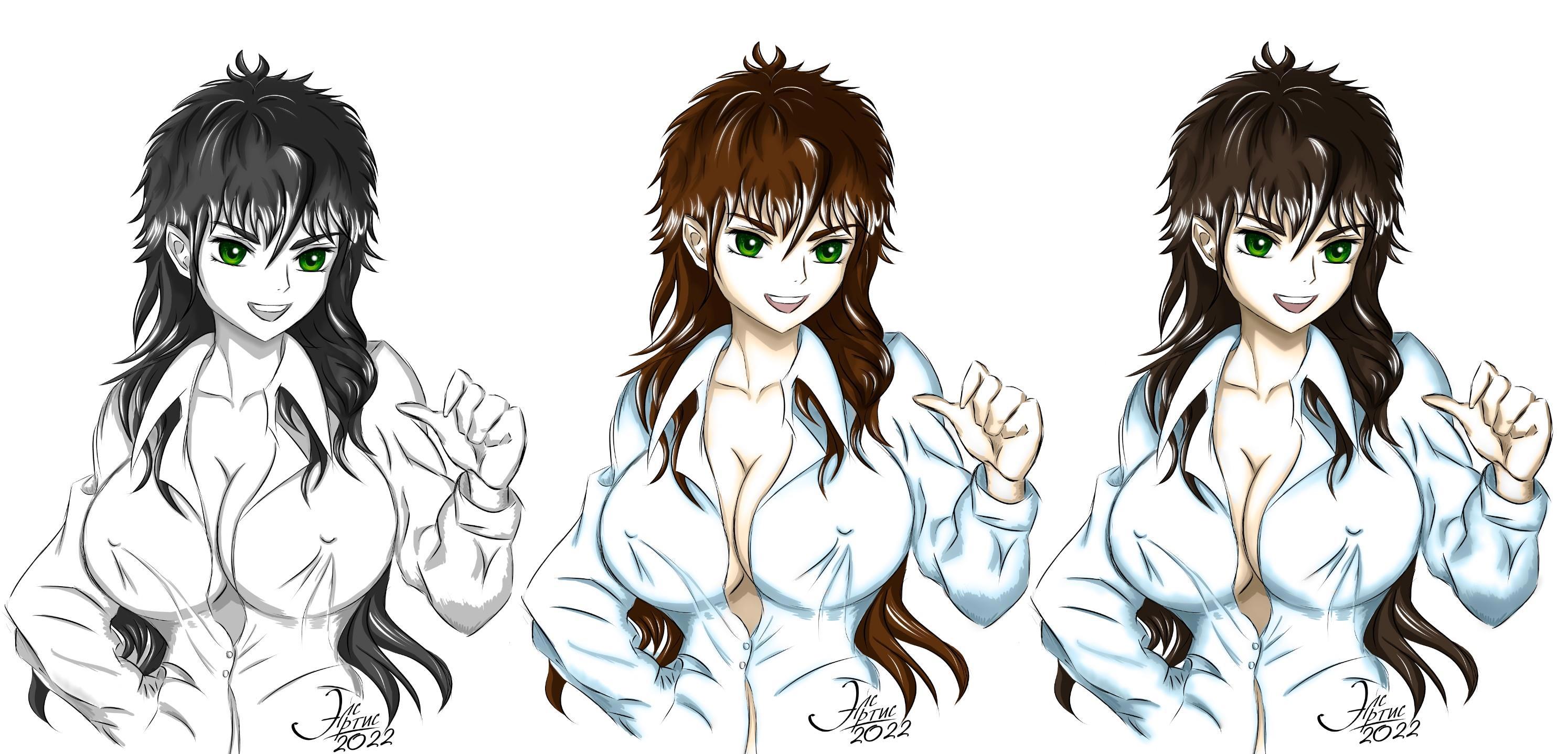 А пока я рисовал Лори, идеи по стилизации у меня были разные. Вот, например, как от ЧБ варианта пришел к цветному: