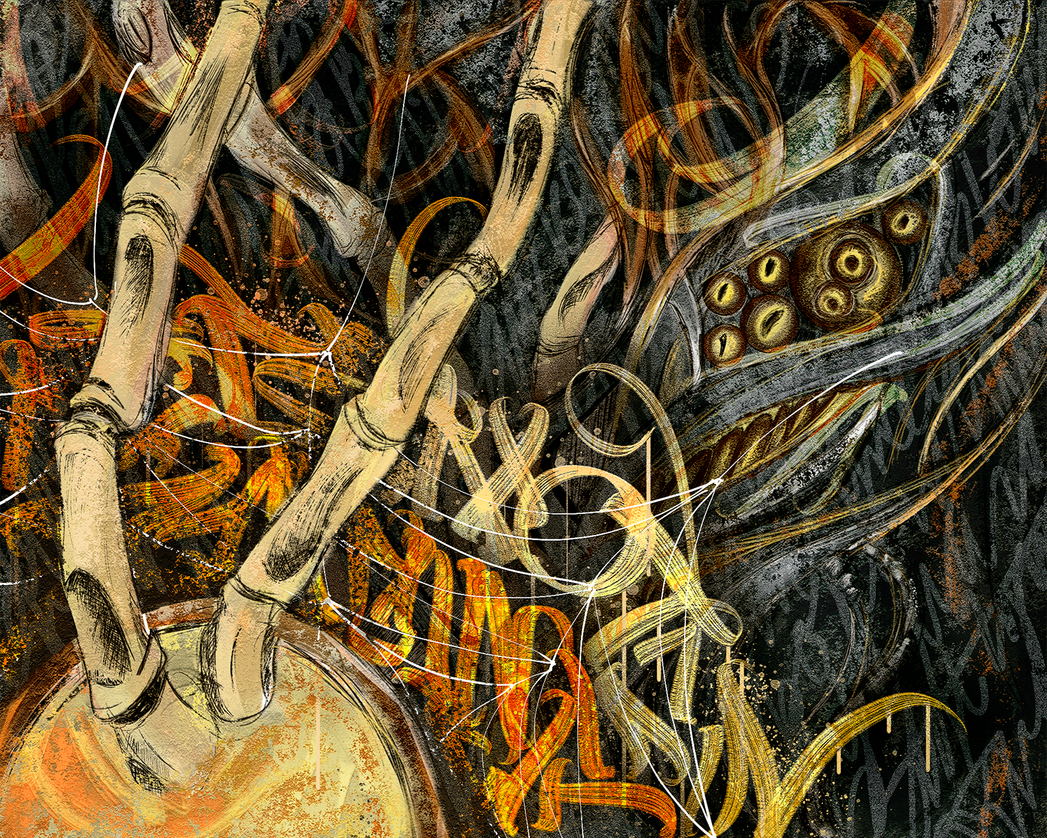 Мириады глаз были прикованы к горящему диску, плоскому со всех точек зрений. Эон они собирали его из кальция, мёда и смертей пленников - светило величия их рода засияло еще десять лет тому назад, но работа по его возвеличиванию завершилась сегодня, когда воля паучьего народа загорелась непознаваемыми словесами в воздухе - кольца и лапы удерживающие его жар в узде.