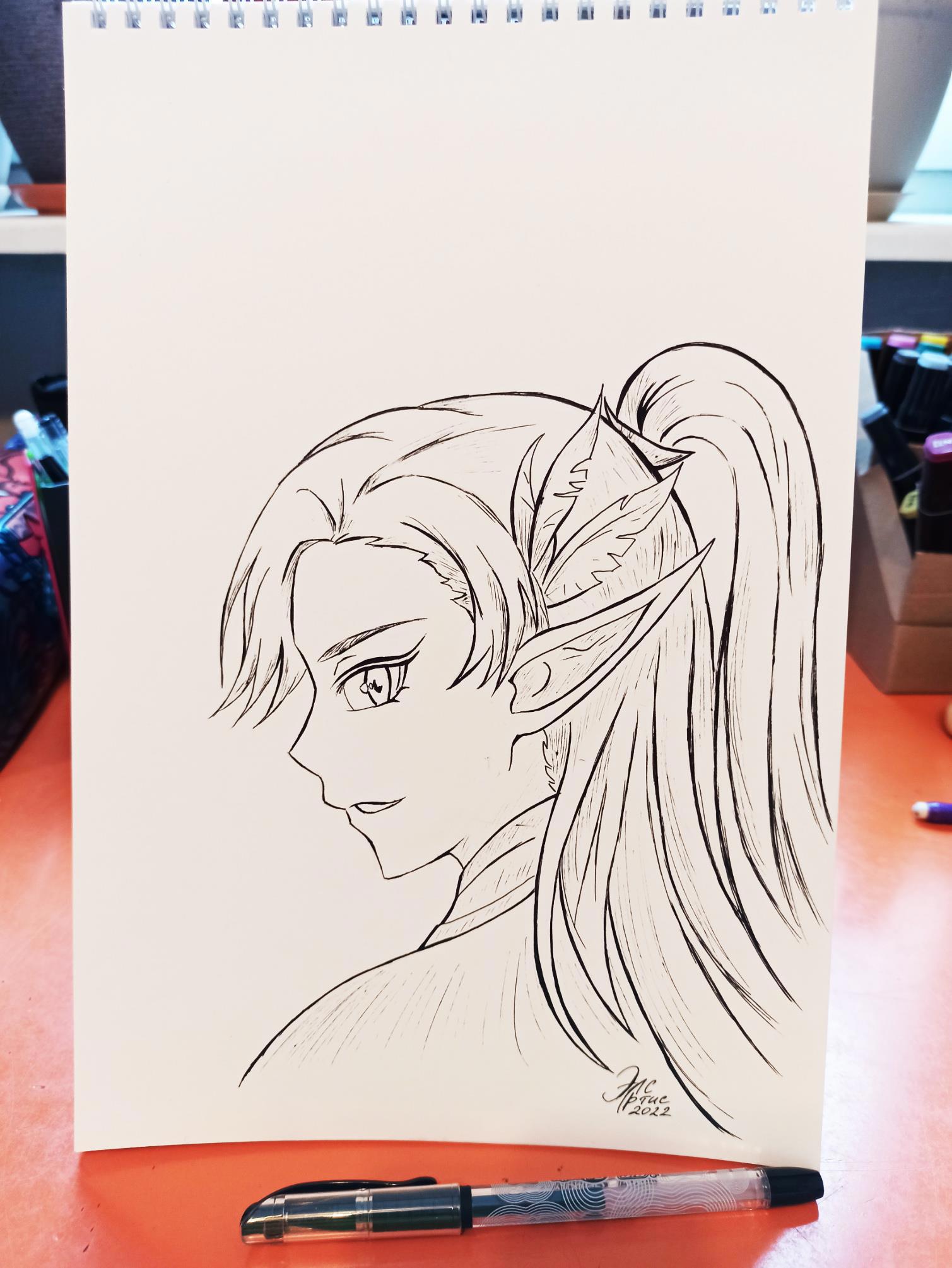 Планировал раскрасить маркерами, но в итоге добавил штрихов гелевой ручкой и оставил как есть. Не уверен, можно ли это назвать графикой, но, определенно, гелевые ручки - это вещь