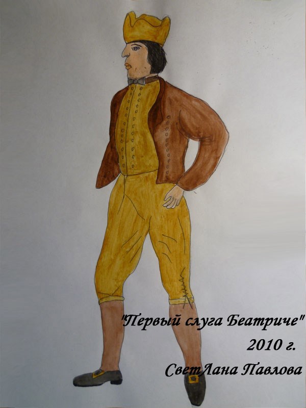 Первый слуга Беатриче Автор: Лана Павлова Первый слуга Беатриче2010-г.Проект эскизов костюмовпо произведению Карло Гольдони «Слуга двух господ». слуга двух господ, акварель, костюм, театр 311 Пожаловаться