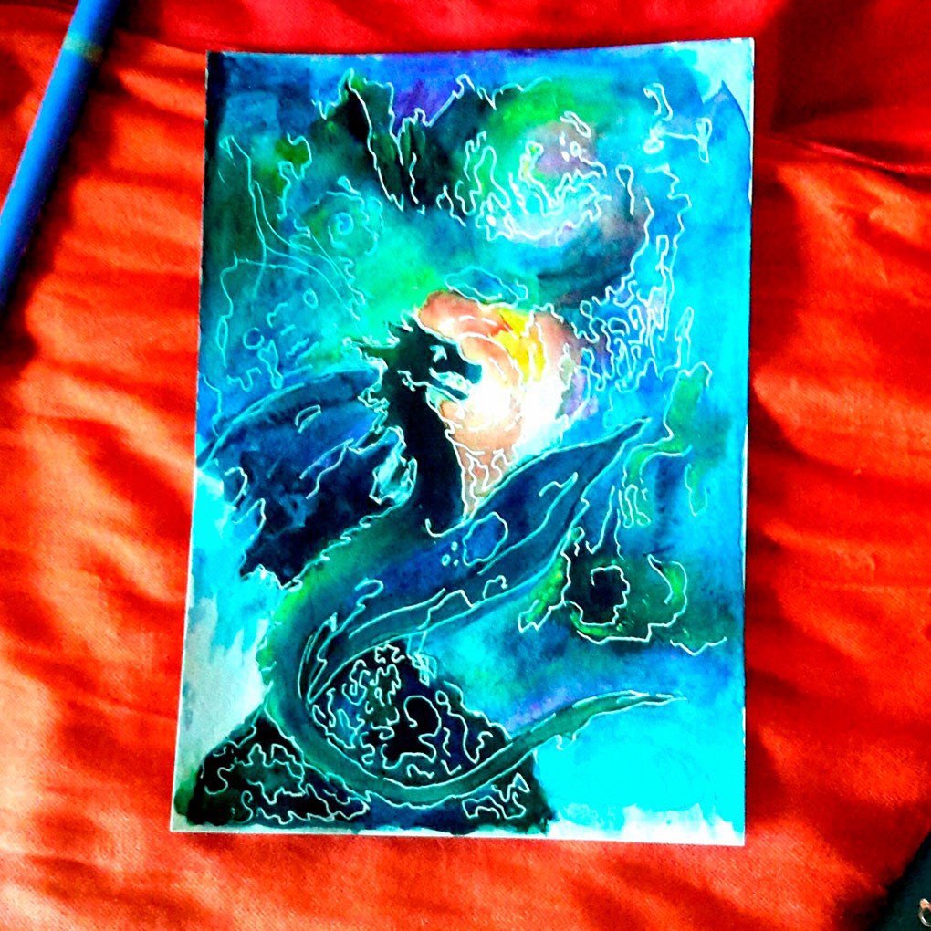 акварель и белая ручка