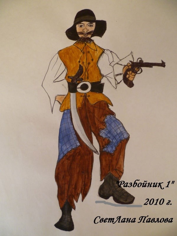 Разбойник 1 Автор: Лана Павлова Разбойник 12010-г.Проект эскизов костюмовпо произведению Карло Гольдони «Слуга двух господ». слуга двух господ, акварель, костюм, театр 236 Пожаловаться