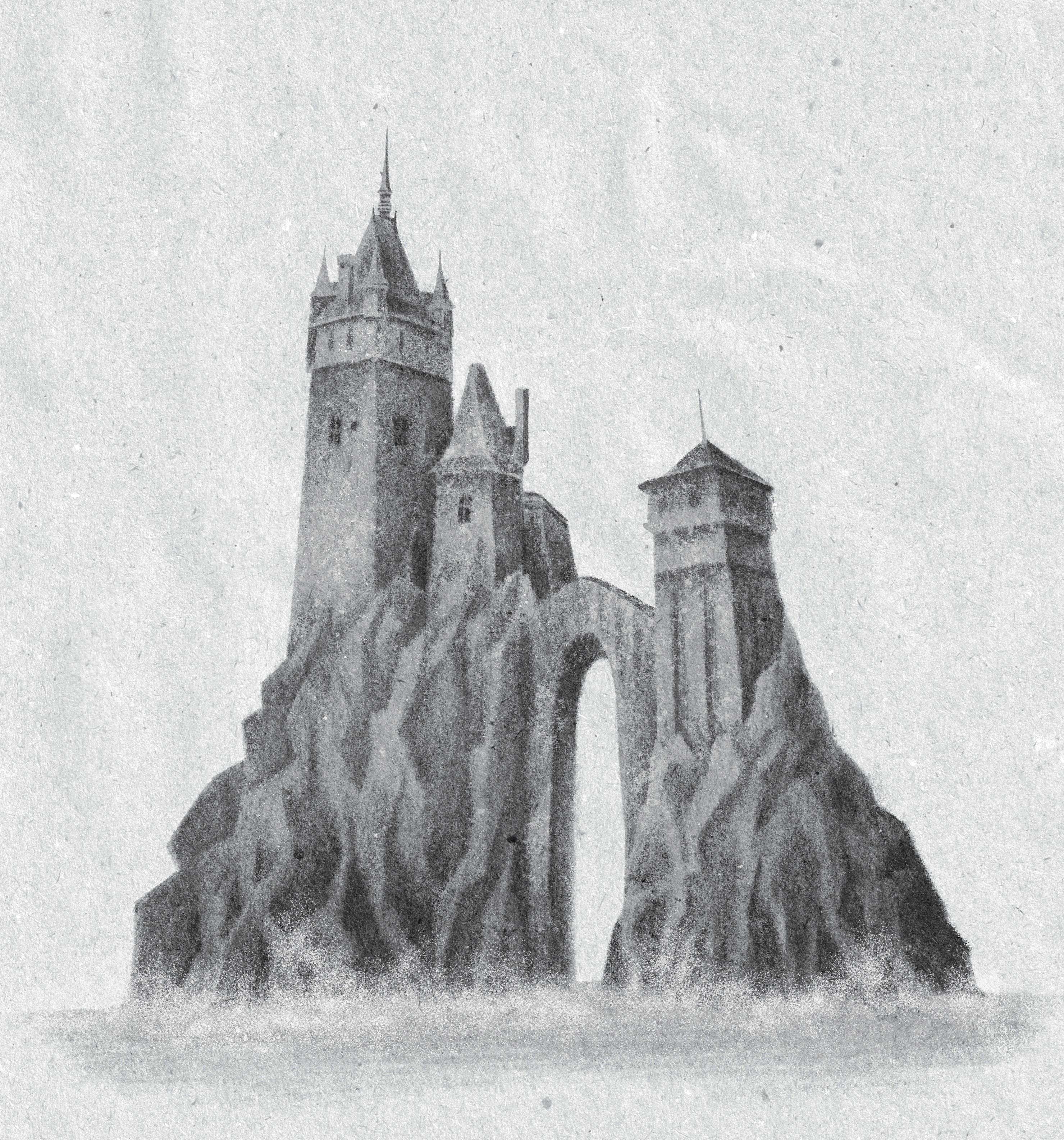Иллюстрация замка Черный утес от Светланы Кучер Половинка форзаца для печатной книги.