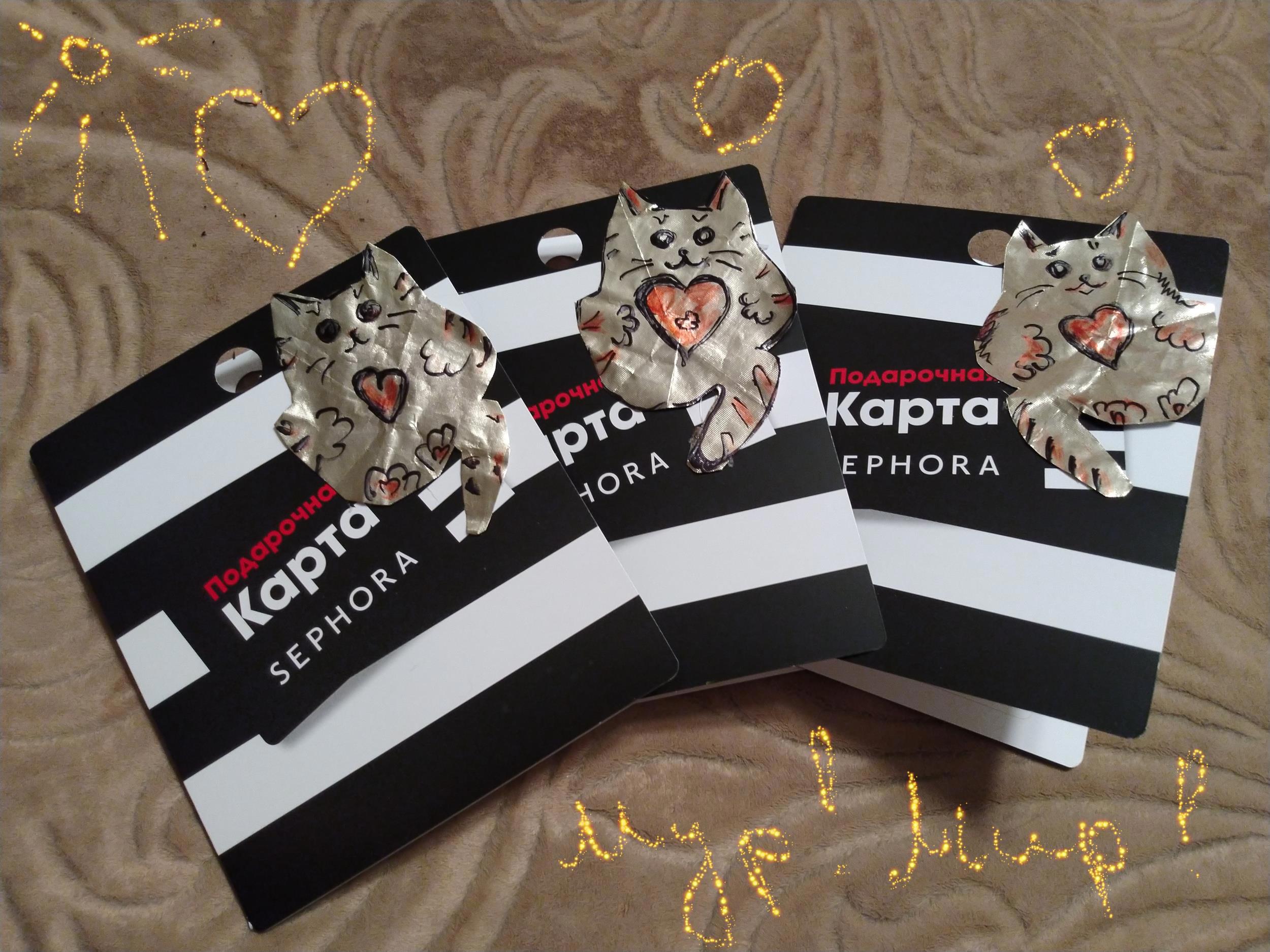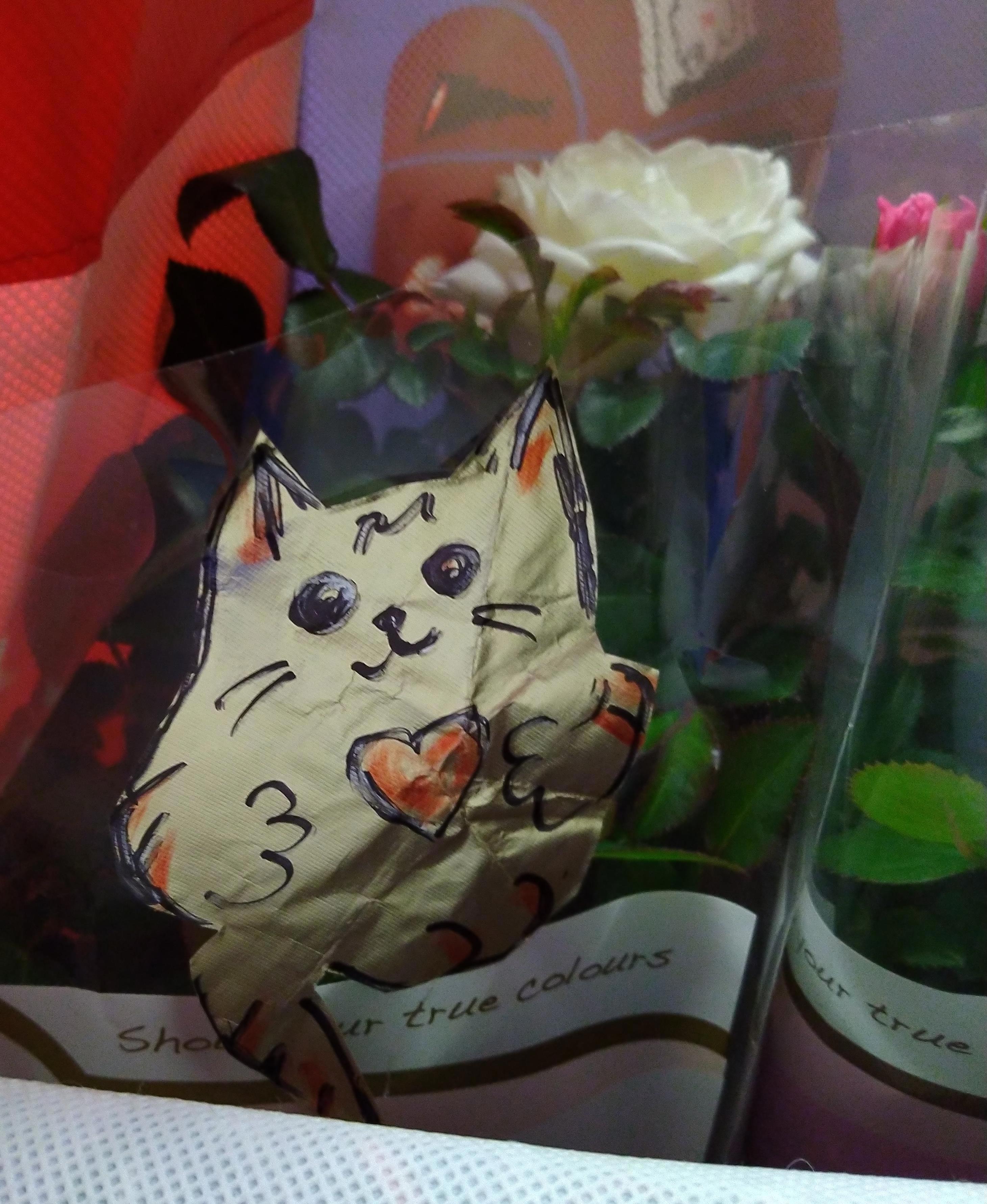 Ну и нарисовали мы в подарок в 4 руки вот такого вот зверушку. Просто так. А заодно сфоткала ещё ручных котиков, которые добавили индивидуальности к стандартным подарочные наборам.