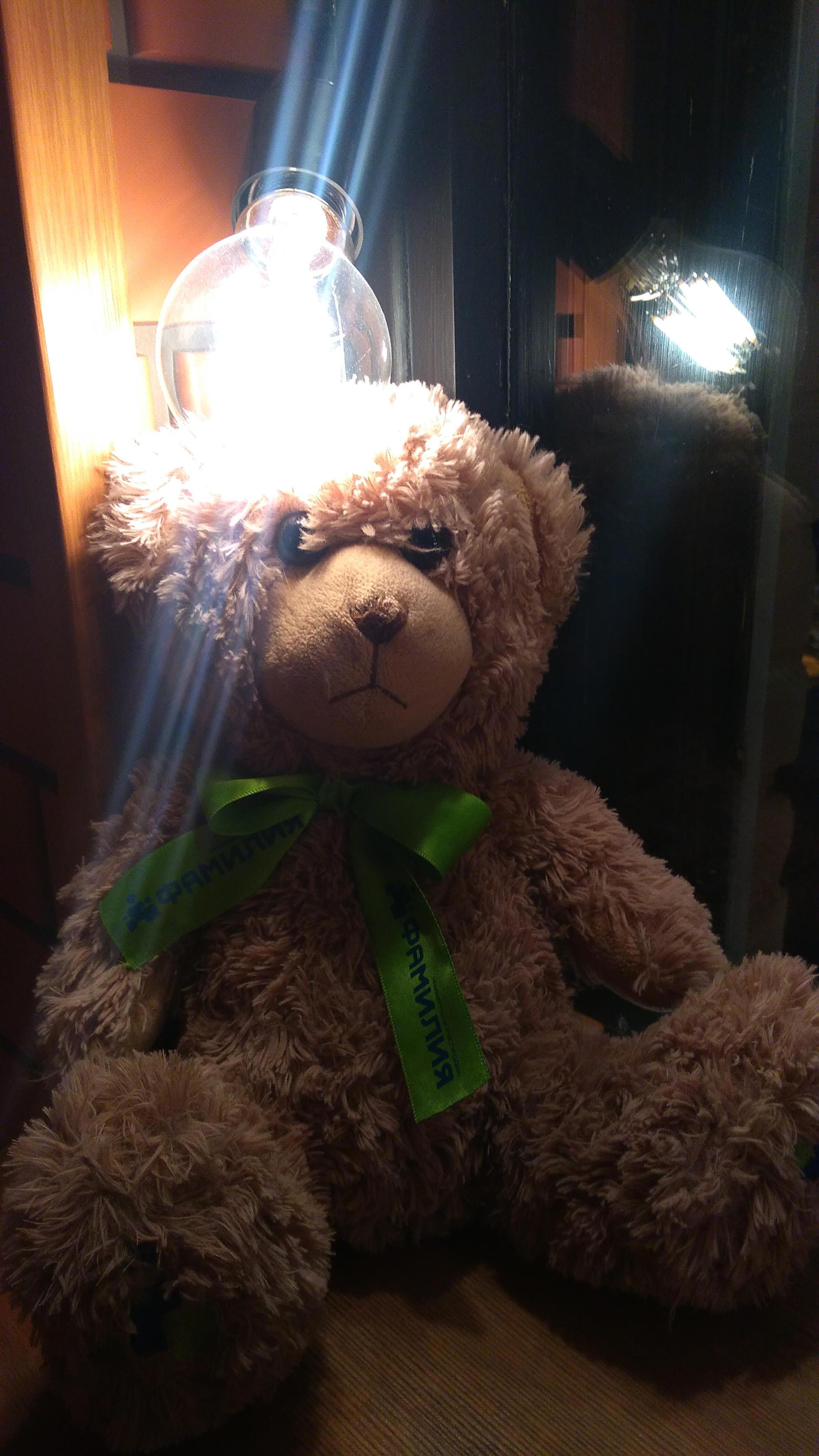 Из краткой предыстории: у ребёнка есть любимая кафешка, где она иногда любит скушать булочку или выпить малинового чаю. И в этой кафешке много плюшевых мишек, что неудивительно - бренд. Мишек можно тискать, играть с ними, просят только пирожными не кормить.