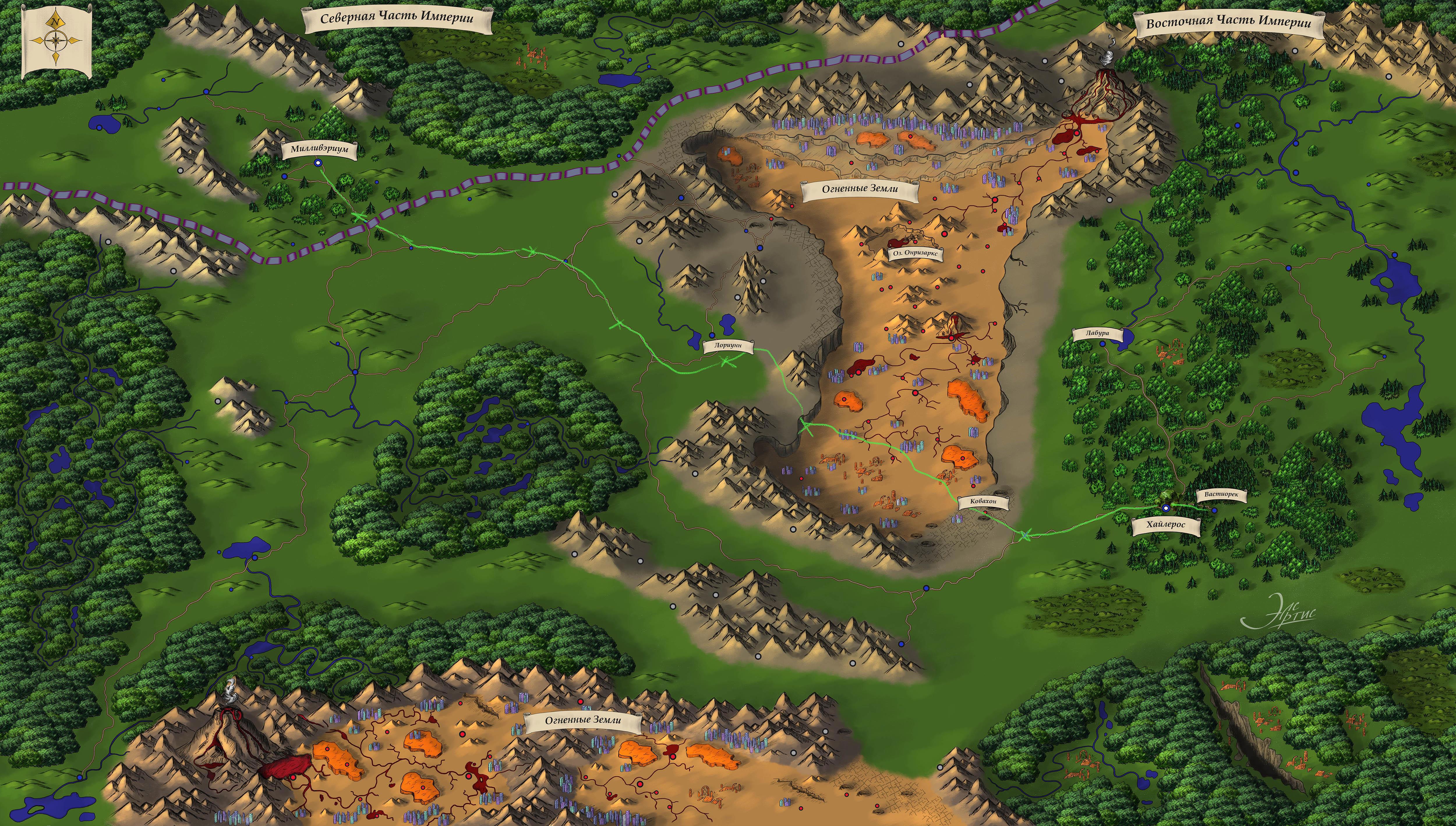А здесь можно отследить по зеленой линии весь путь Элмио, Клэйрохса и Ксариэль от Хайлероса до Милливэриума: