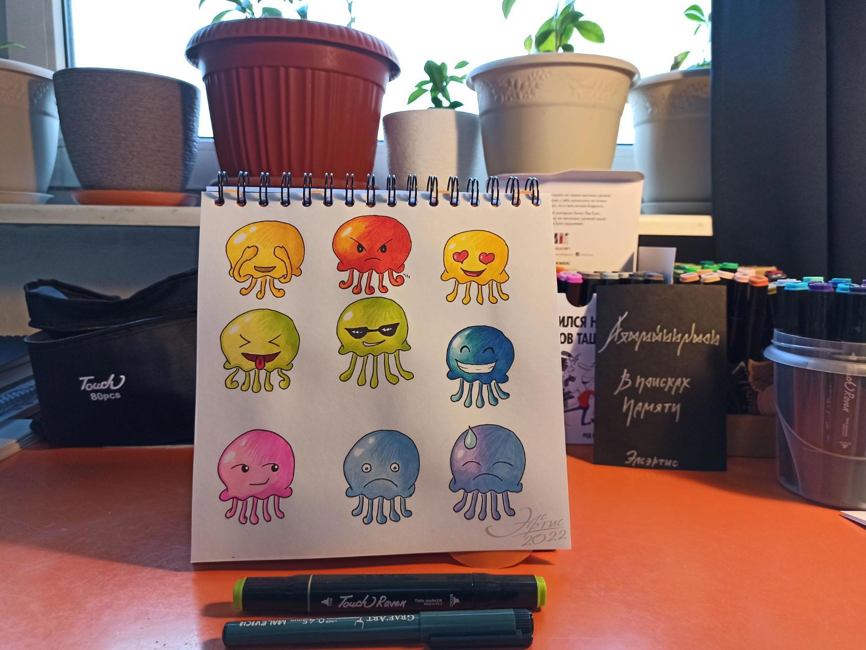 Как бы не так! Третья партия медуз на подходе)) да-да, нарисовал еще девять, просто пока не раскрасил))