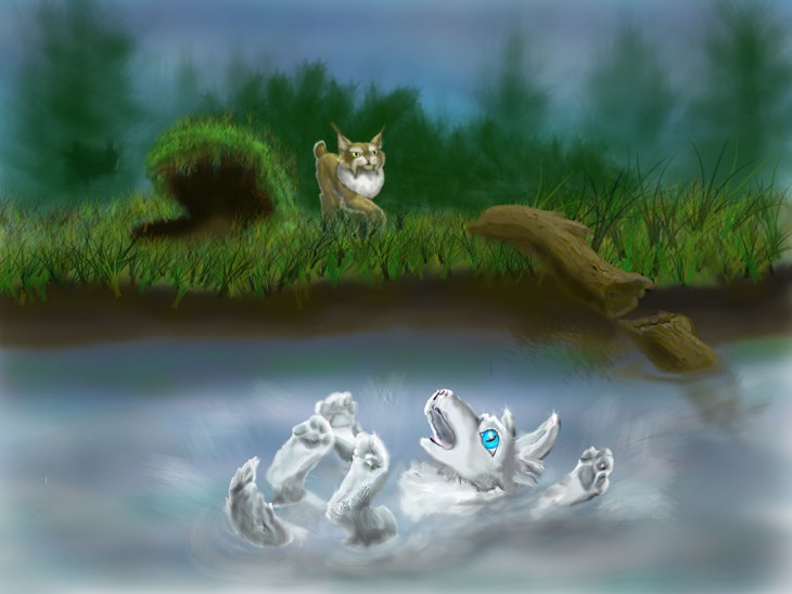 Я старательно грёб лапами, но, сколько ни старался, меня неумолимо сносило вниз по реке.