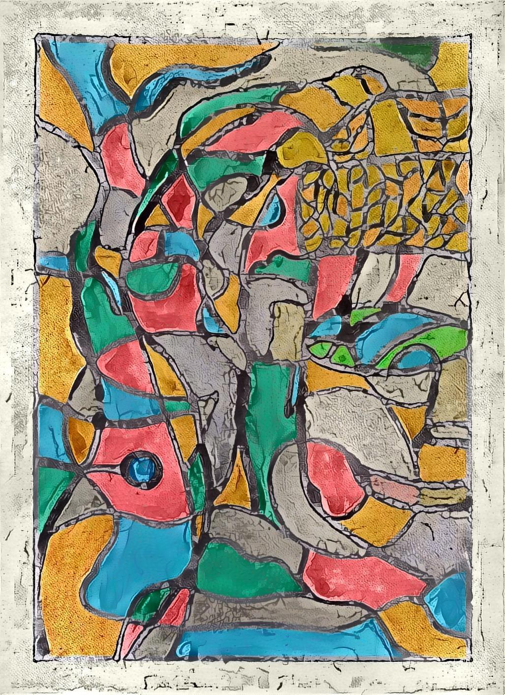 потом я смешал два изображения и немного ещё легко фильтром под поверхность дерева приглушил.
