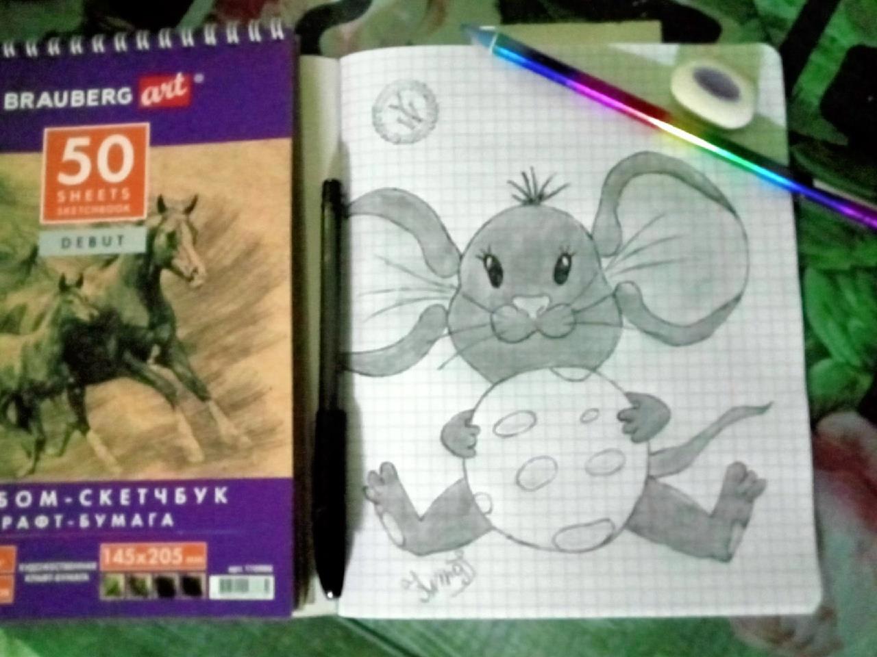 А тут типичный мышик с вкусняхой... тоже рисунок по-быстрому, хотя и набросала его уже давненько и тоже там без всякого сидя в кафешке за столиком, а вот дорисовала до ума вчера, да... вроде вот вышло миленько хотя и косячненько... но я ж не художник прям а просто вот от желания и для души... так что сетующих на "как то не так и не правильно" тут Вам разгуляться есть где, но бессмысленно, я услышу, но именно так всё и оставлю... угу... а других милости прошу... мышик и я вниманию будем рады... да...