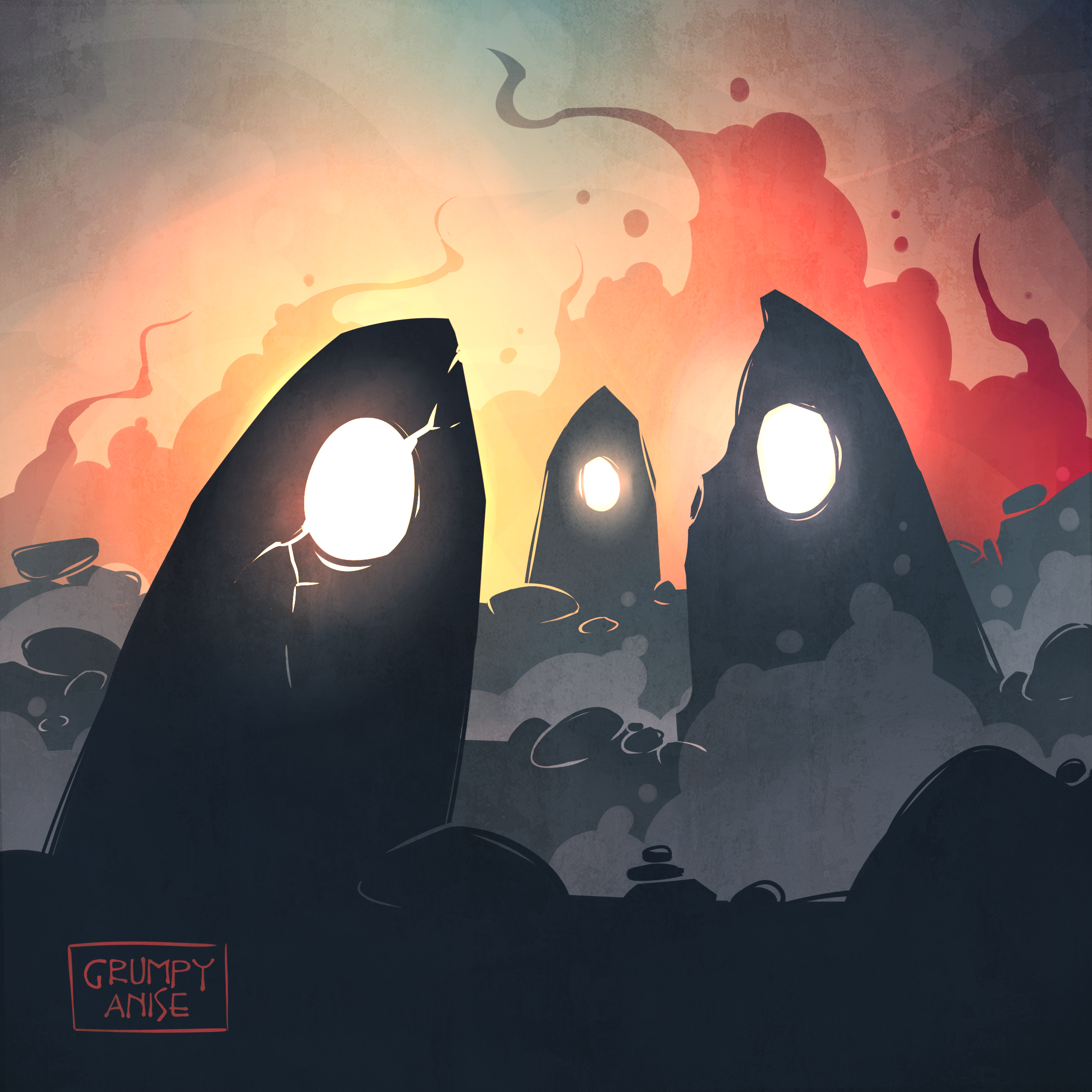 Тут забавная история. Хотела просто что-то миленькое про камни и звёздное небо (ну, знаете, как я люблю, добрая тёмная ночь, сказки, вот это всё), но заиграли странные саундтреки: сначала к Изгою-1 (где Звёзда Смерти что-то в очередной раз взрывает), потом к Ван Хельсингу (где едет горящая повозка) и сразу ним ещё к Игре Престолов (драконья тема) и как-то после всего этого мне уже самой хотелось что-нибудь сжечь. Я, честно, даже не знала, что в моём рабочем плейлисте столько агрессивной музыки. х)