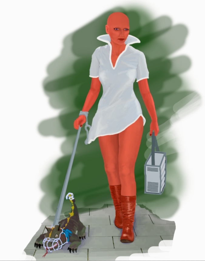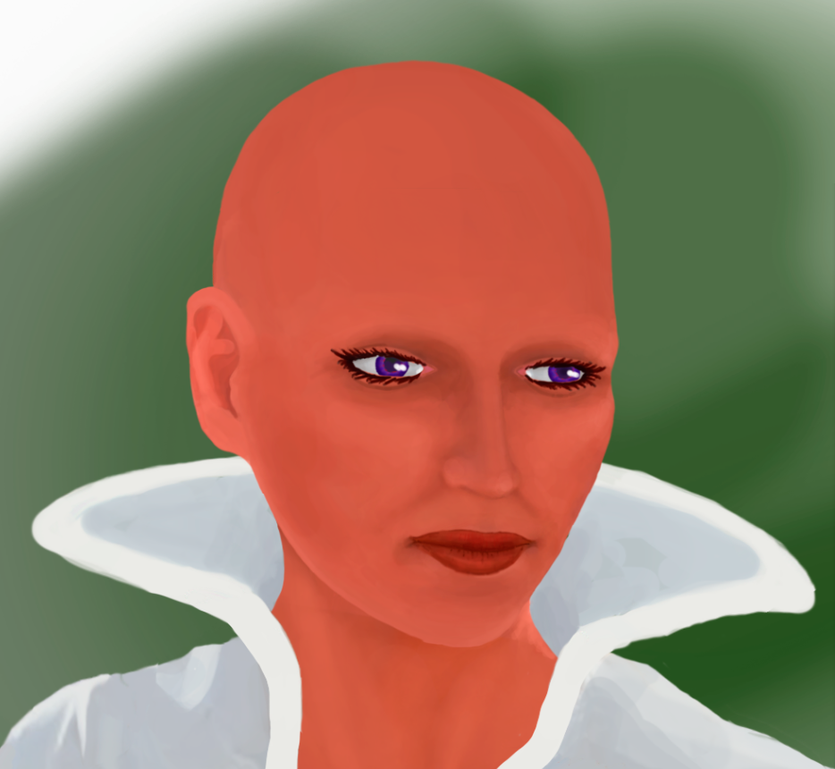Сразу увидел ошибку. Потерялась контрастность. На обычной хотя и и темной коже было лучше. Но рисовать сразу красную кожу не получилось, не чувствую цветотени совсем...