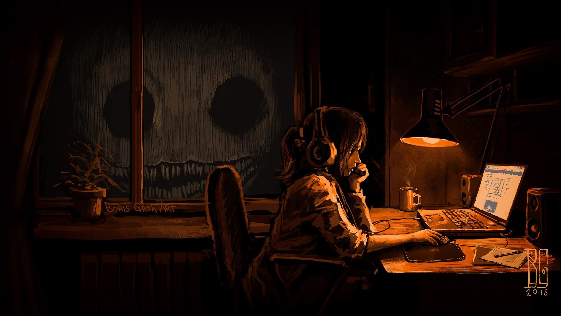 Ночь. Автор: Alex Berest Автор - Борис Грох ужасы, девушка, ноутбук, ночь, арт, картина 370 Пожаловаться