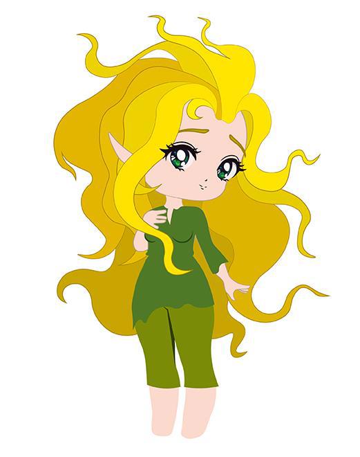 Волнистые светлые волосы спутаны. Довольно длинные для такого молодого эльфа уши напоминают заячьи и торчат из копны волос в разные стороны. На лбу розовеет шишка…