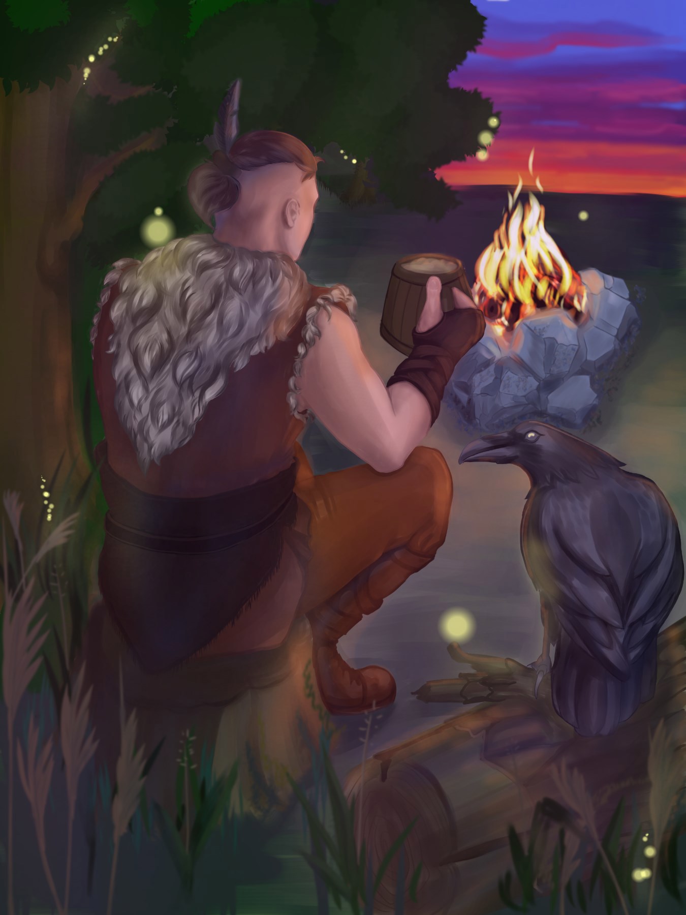 - Когда солнце опускается, мы вновь собираемся здесь. Пламя пляшет на камнях, вороны приветствуют нас, и мы снова поднимаем кружки за тех, кто здесь и за тех, кто навсегда остался с нами.