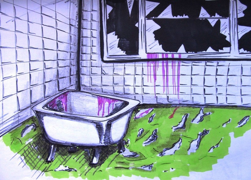 Заброшенный санаторий Автор: Алёна Моденская Заброшенный санаторий "Черноречье" из романа "Успенский мост". Розовенькие подтёки - это фенол. графика, авторская иллюстрация, хоррор, черноречье 199 Пожаловаться