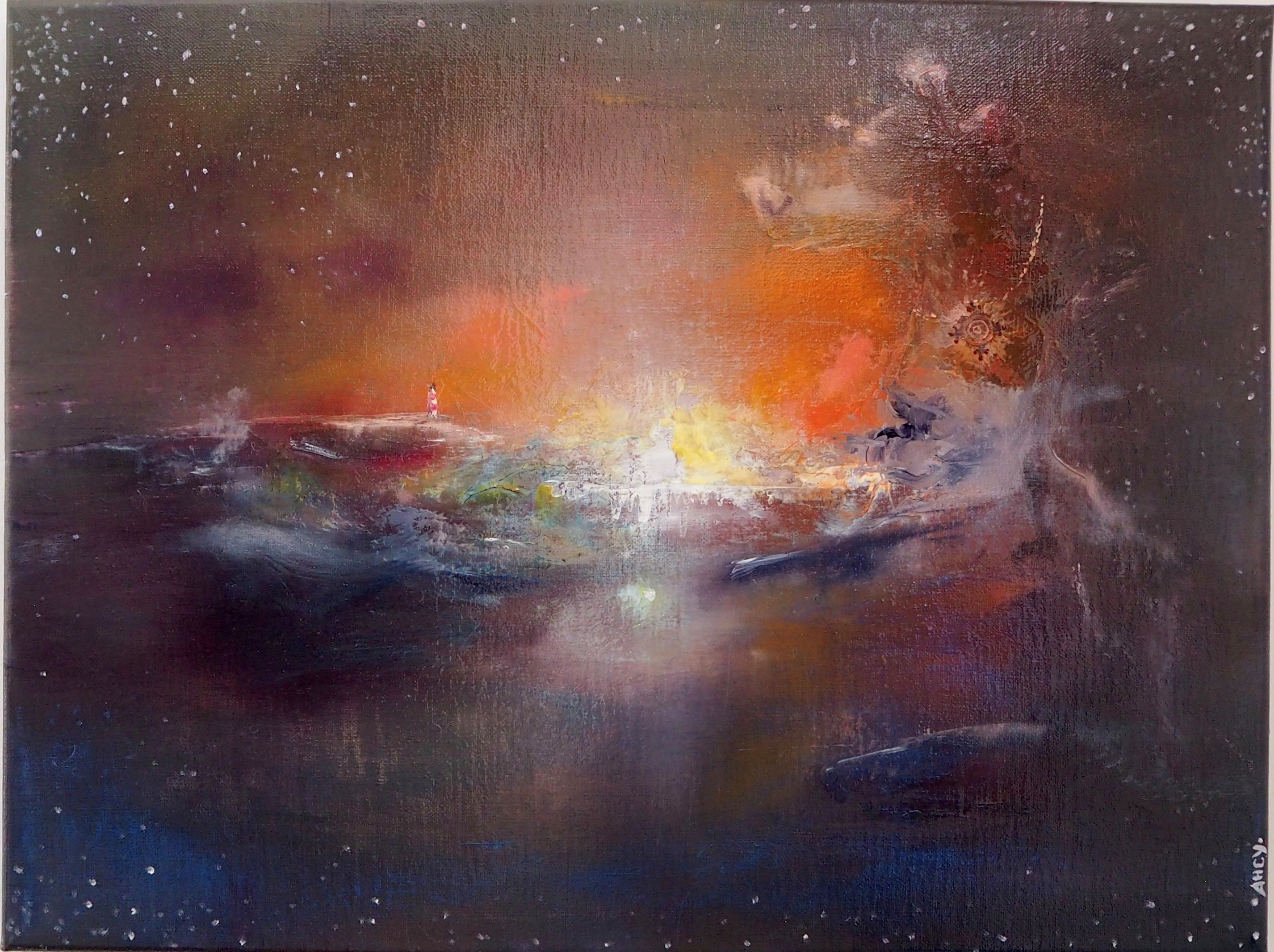 Картина называется «Хранитель маяка». Сохнет. Я использовала в работе лессировочные французские пигменты, очень довольна.
