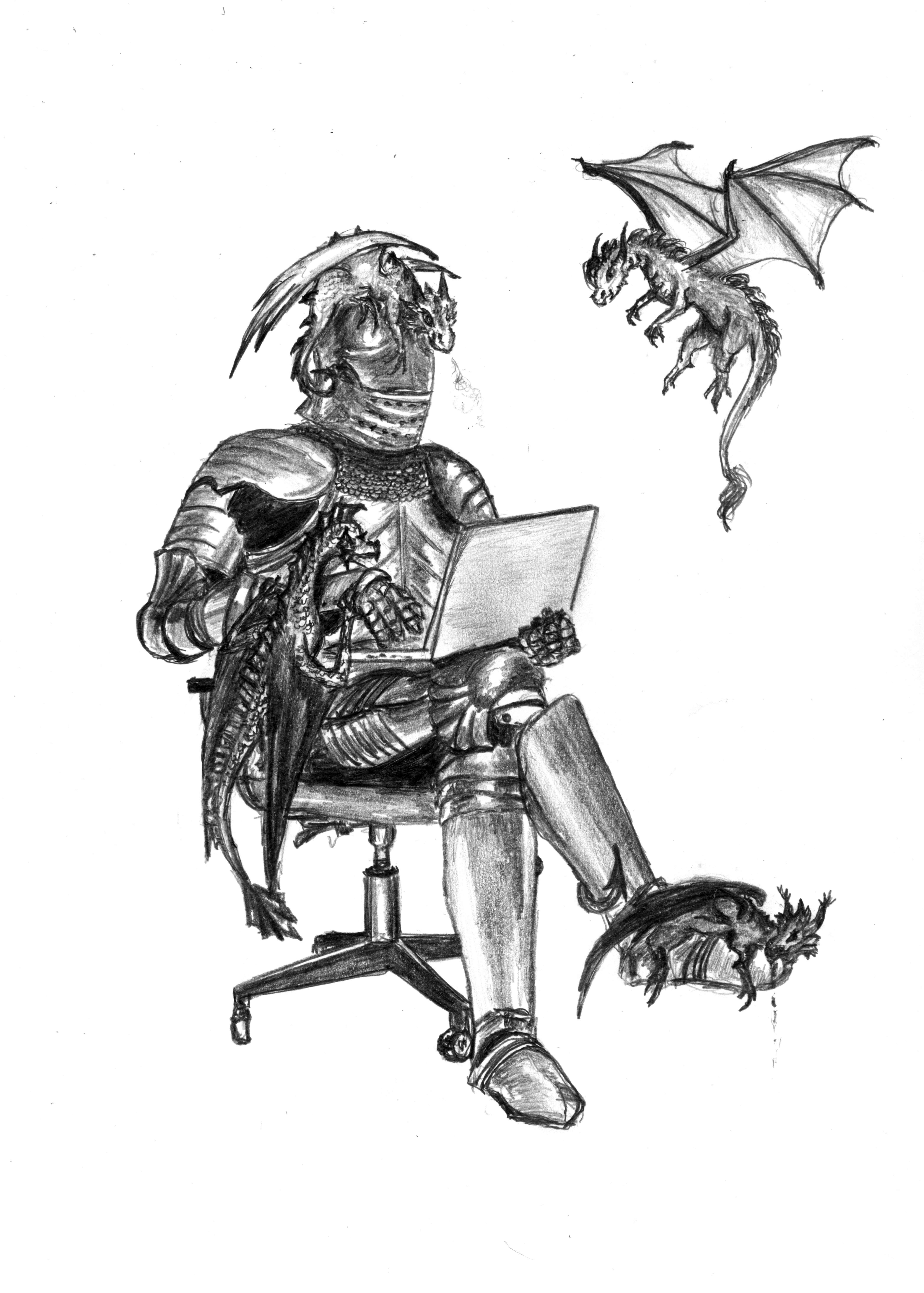 Даже не знаю, как назвать. Все же это не иллюстрация. Автор: Бутузова Ирина драконы, рисунок, рыцарь, чернобелое, юмор, янидраконы 259 Пожаловаться