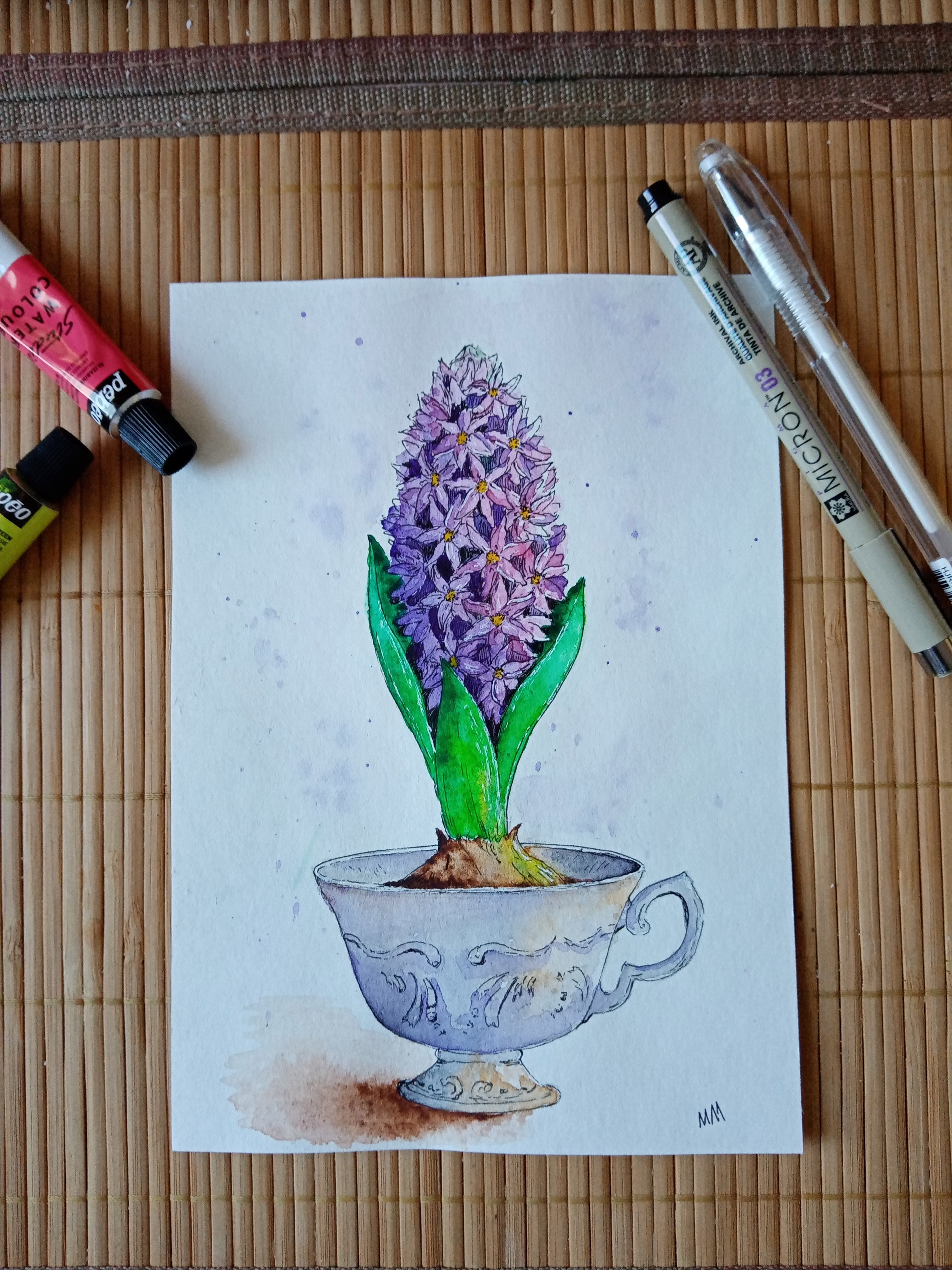 Гиацинт Автор: Рина Маринкина Немного цветочного настроения Рисунок выполнен по МК школы рисования ВсемАрт акварель, акварельный скетч, скетч, цветок 263 Пожаловаться