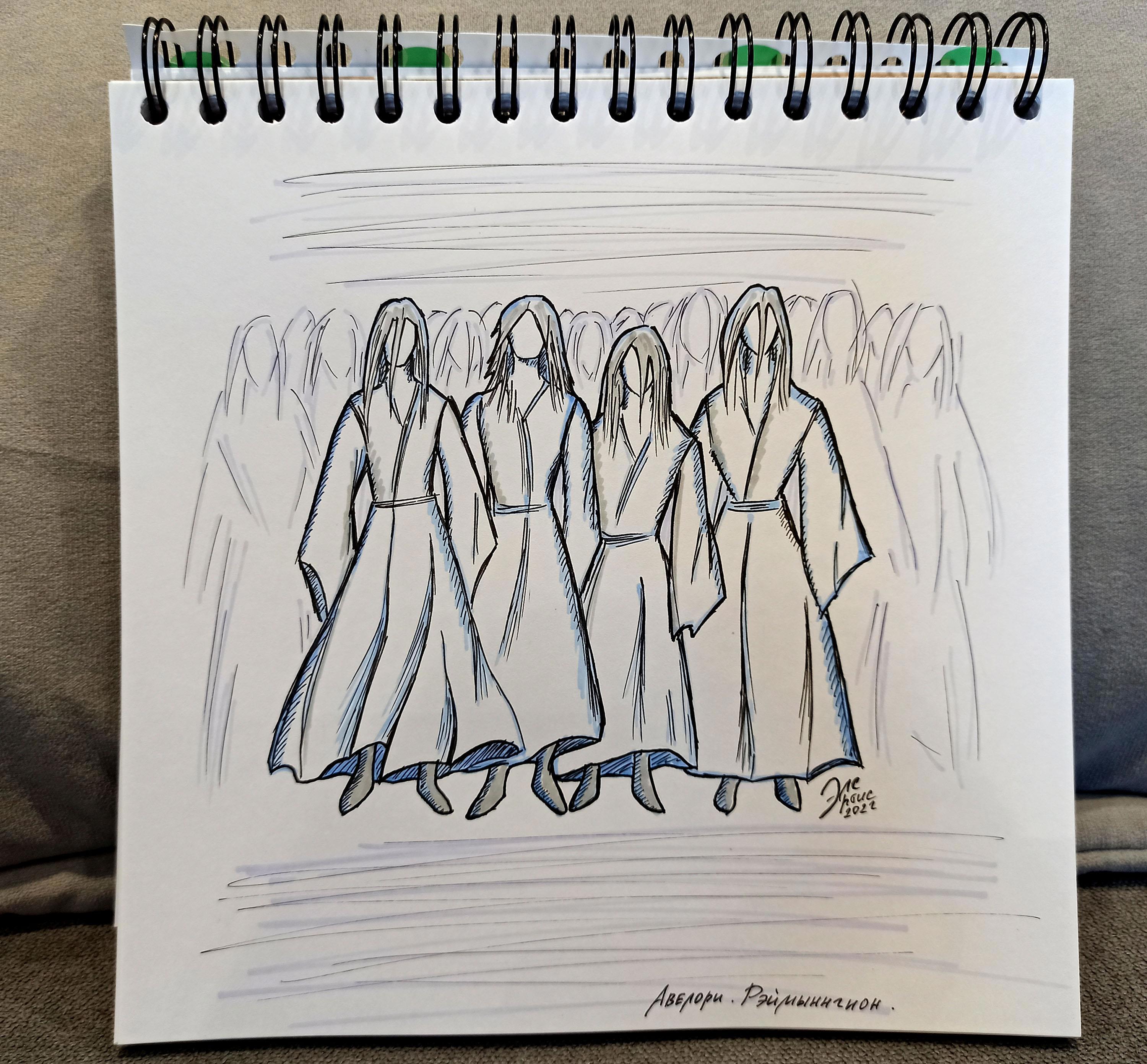 Их тела и длинные неестественно тяжелые волосы словно были сотканы из мутноватой воды. Полупрозрачные, с голубоватым оттенком кожи и уставшими безразличными лицами, авелори напоминали своим видом утопленников или обитателей заброшенного кладбища, решивших прогуляться в дождливый день. Обреченности их жутковатому облику, почти лишенному всяких признаков жизни, добавляли длинные бесформенные одежды белого оттенка.