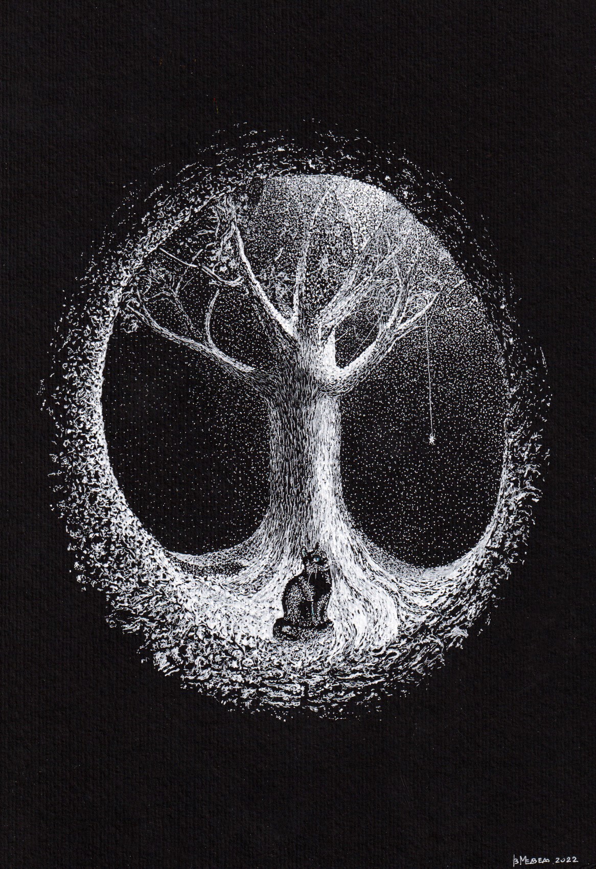 Иггдрасиль Автор: Виталий Медведь А4, черный картон, гелевая ручкадотворк, стипплинг стипплинг, пуантилизм, графика, дотворк 305 Пожаловаться