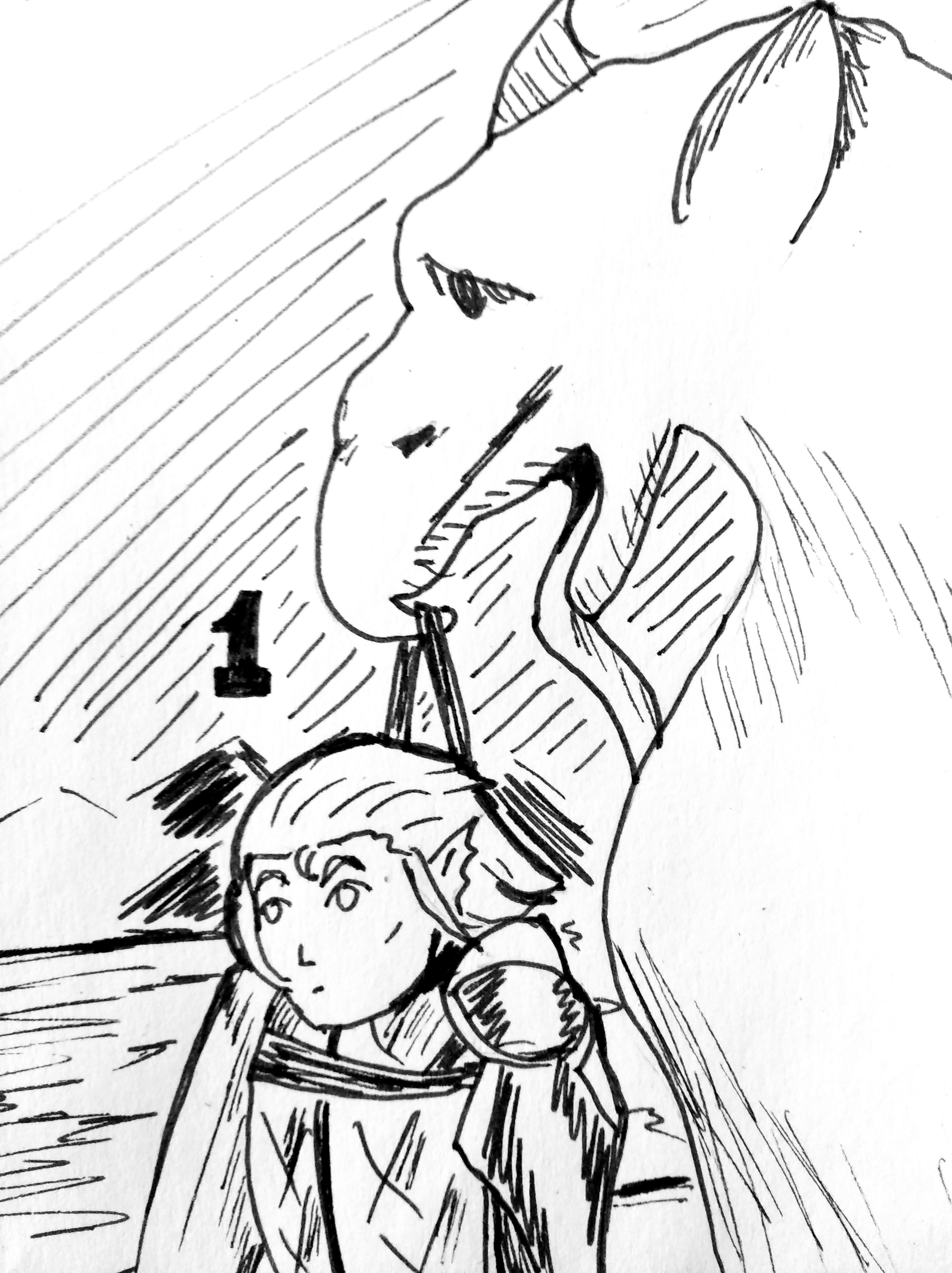 Большая часть рисунков будет относиться к Аторне. Вот и горгулья на замке где-то среди гребанных миль и миль империи. На ней повис детёныш, вообще не понимающий как он туда попал и как оттуда слезать. Волноваться не стоит, он будет в порядке, и это не первый и не последний его косяк.