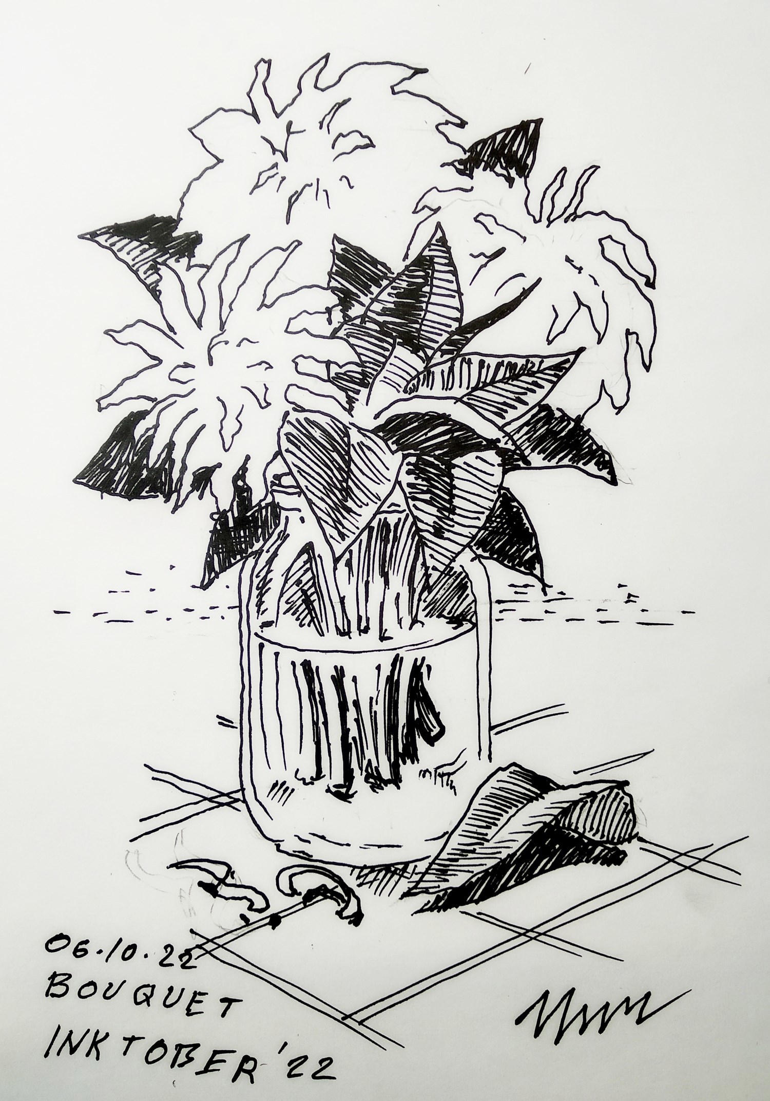 Букет от 6 октября ИнкБобера. Пытаюсь вспомнить, что еще я так же не люблю рисовать, как цветы.