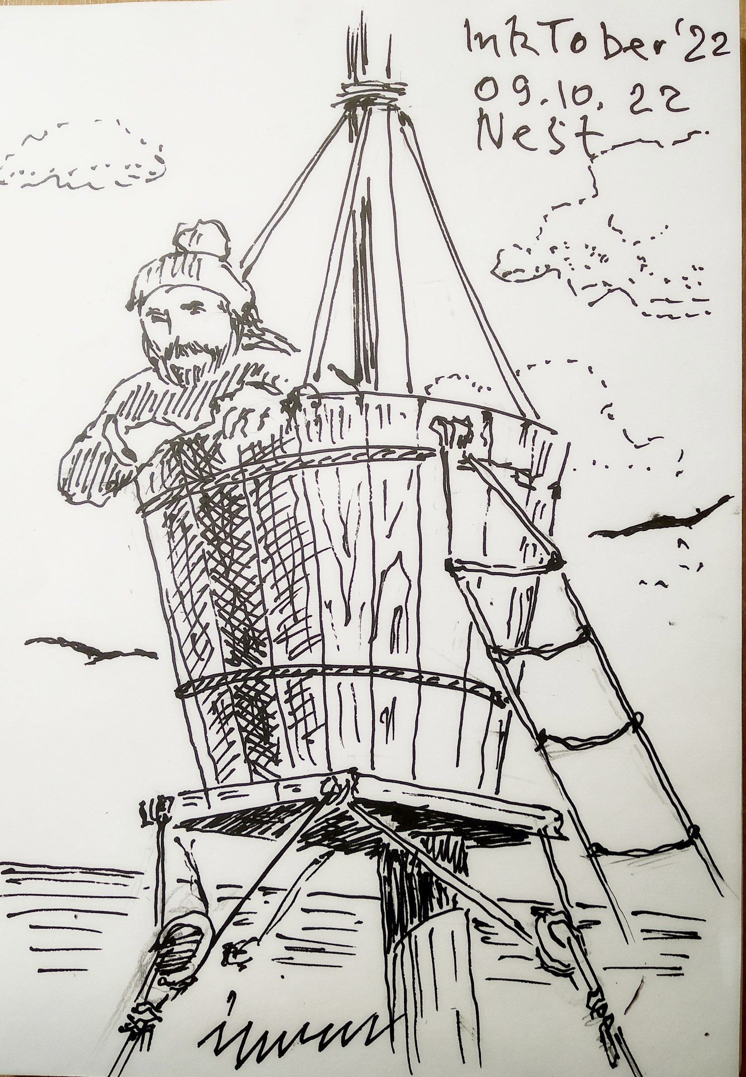 Воронье гнездо Автор: Вадим Чичерин InkTober-2022. 09/10/22. Nest.Воронье гнездо - марсовая площадка. Ласточкино гнездо... inktober 2022 216 Пожаловаться