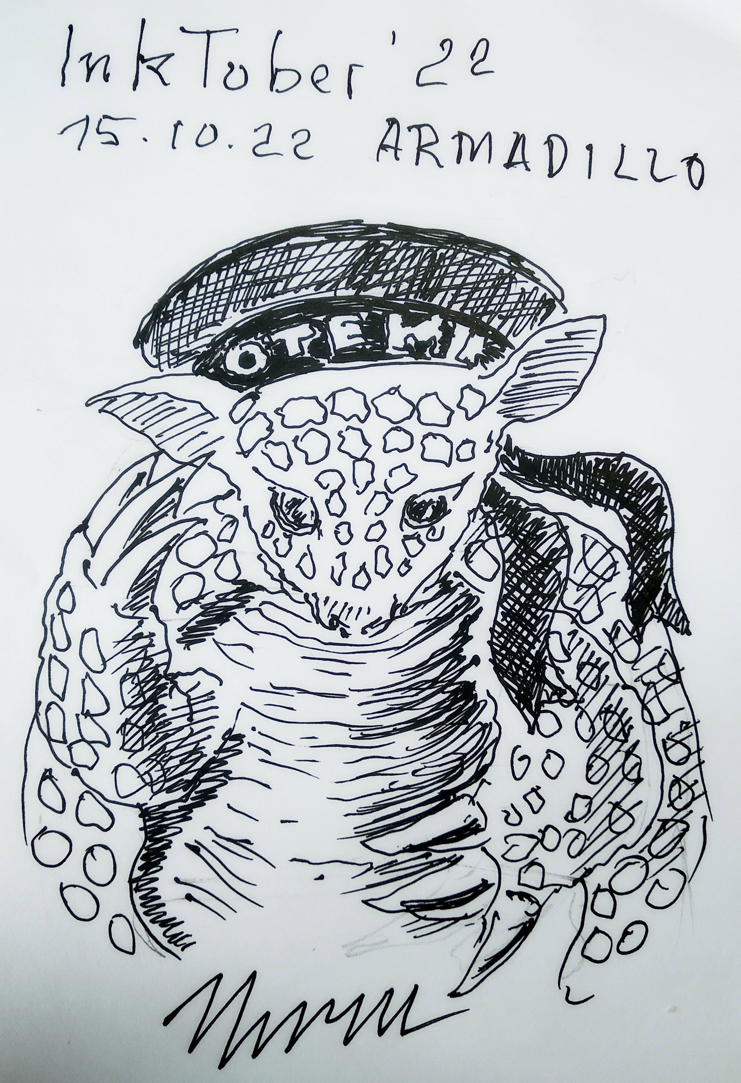 Иллюстрация #16 Автор: Вадим Чичерин InkTober-2022. 15/10/22. ArmadilloБроненосец с броненосца... :) inktober 2022 194 Пожаловаться