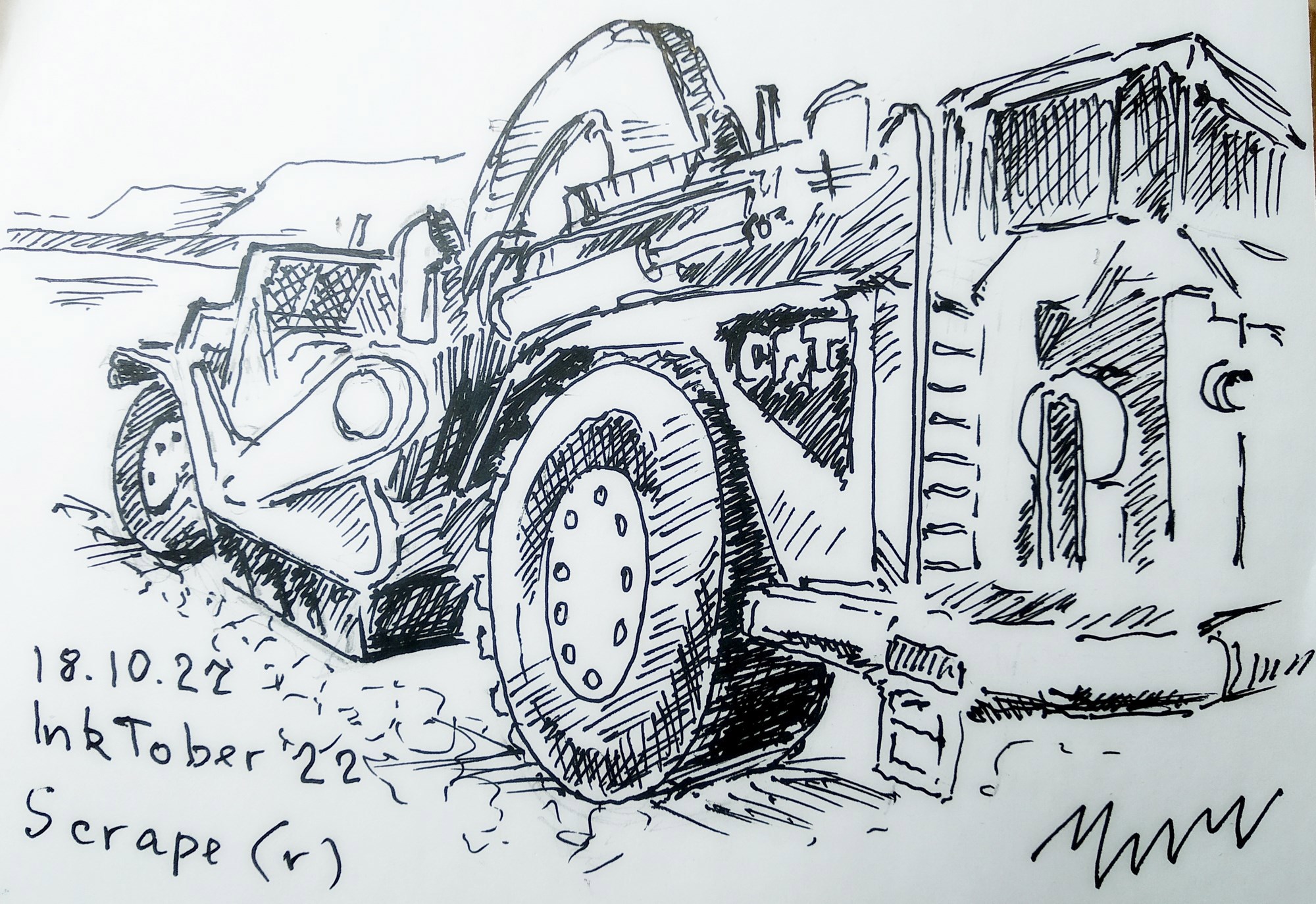 Иллюстрация #19 Автор: Вадим Чичерин InkTober-2022. 18/10/88. Srape.Скрепер - тоже скребет, царапает, работает... Полезным делом занят. inktober 2022 175 Пожаловаться