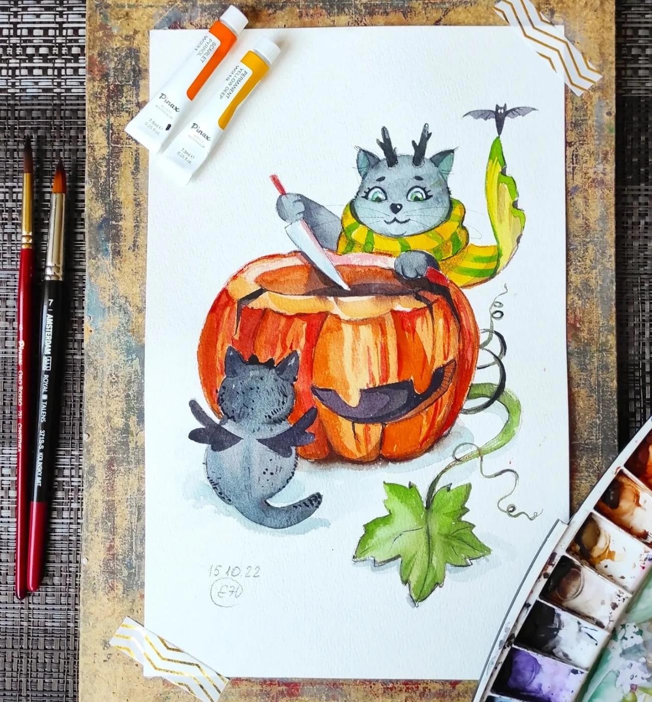 Хэллоуинские котики Автор: Elena Alimpieva детская иллюстрация, иллюстрация, котики, персонаж, творчество, фэнтези, хэллоуин, акварель, волшебство 268 Пожаловаться