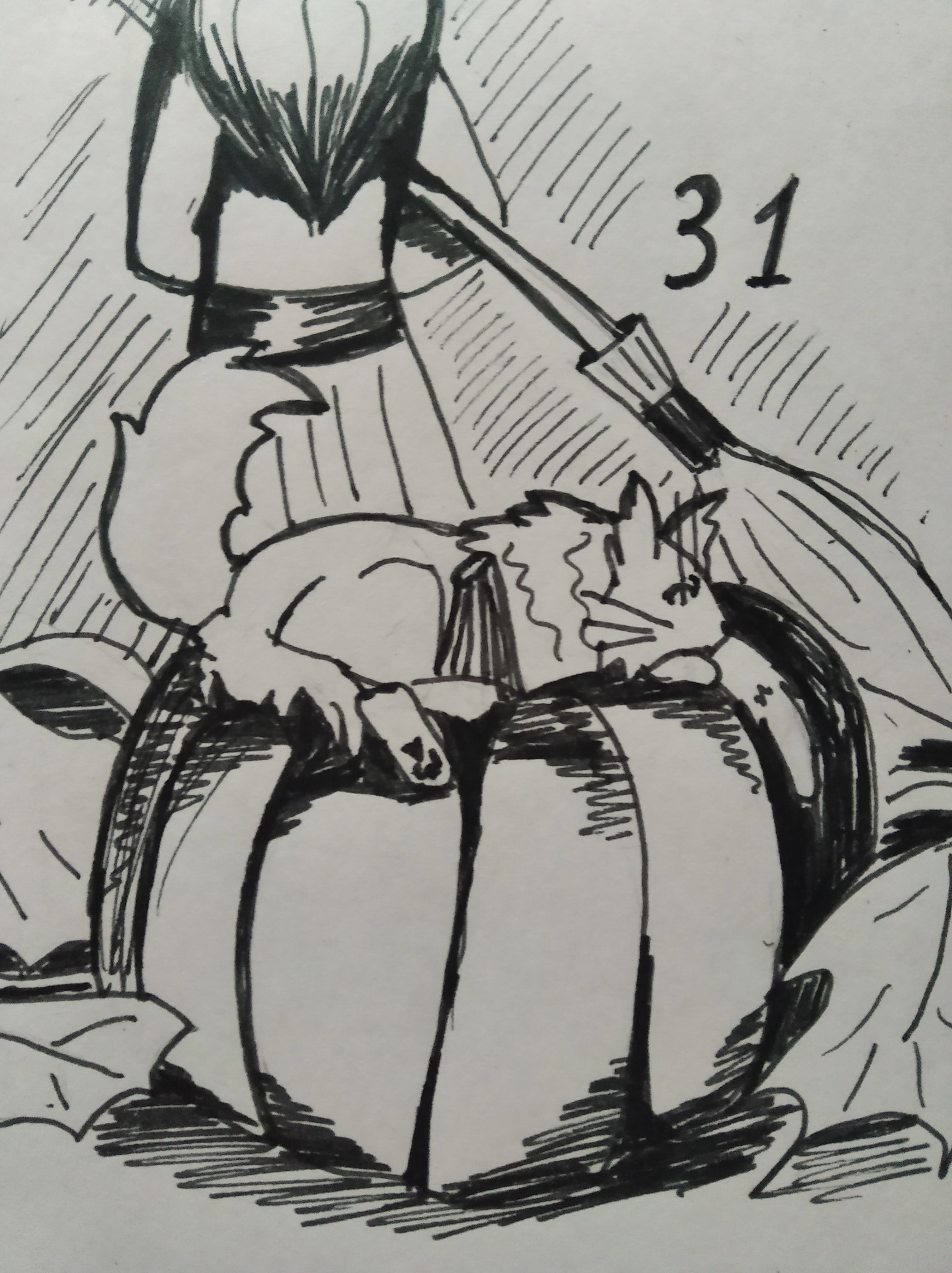 Ферма к Хеллоуину обязательно должна быть с тыквой и котом. Кот не чёрный, но всё же колдовской и пару раз упоминался в тексте как пример последствия сбитого колдовства.