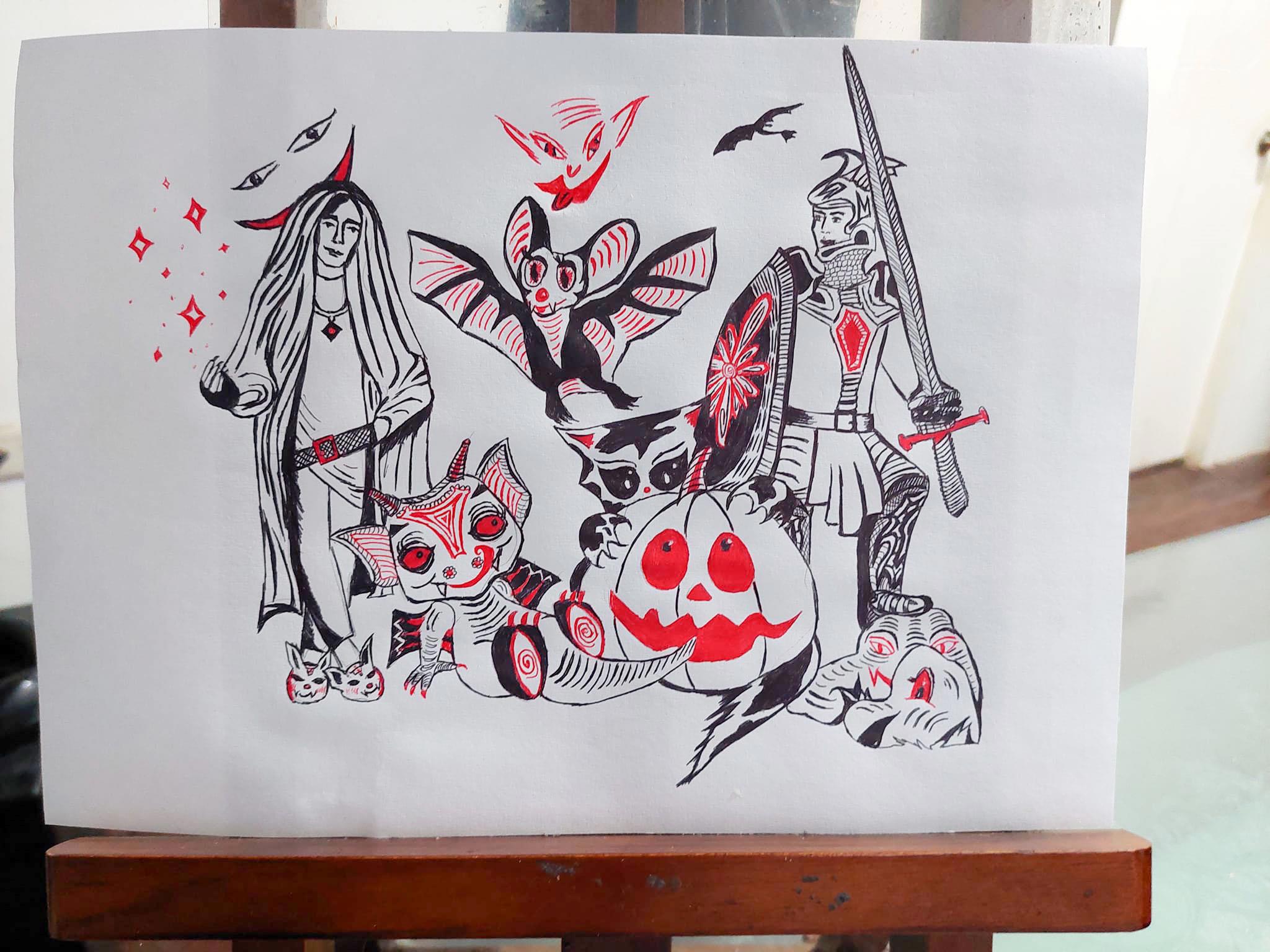 Открытка праздничная Автор: Светлана Кузнецова Думаю, читавшие цикл https://author.today/work/series/14254 узнают если не всех, то многих. авторская иллюстрация, фэнтези, приключения темного властелина и героя, рисунок шариковой ручкой, хэллоуин 329 Пожаловаться