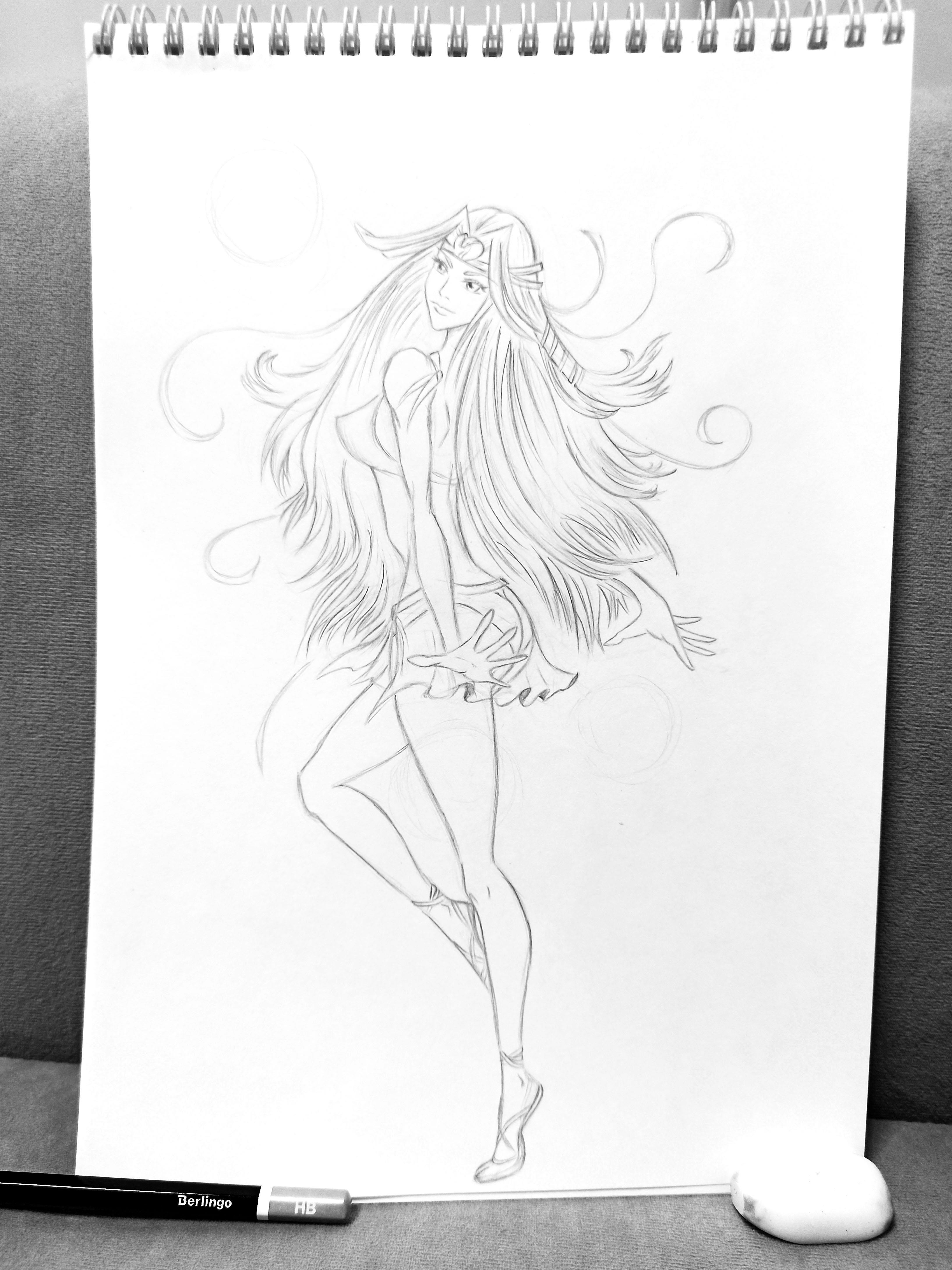 Предыдущий рисунок этой же дамы мне не особо понравился. В итоге я пришел к выводу, что полноразмерных героев в традишке рисовать на чем-то меньше чем А4 - это для меня ну никак не вариант!