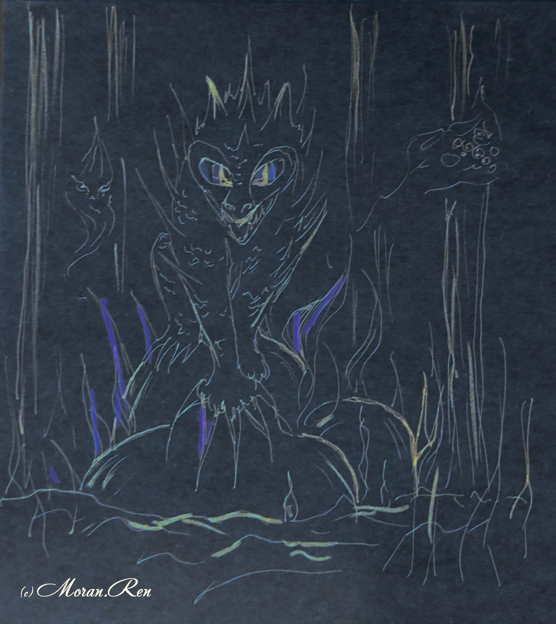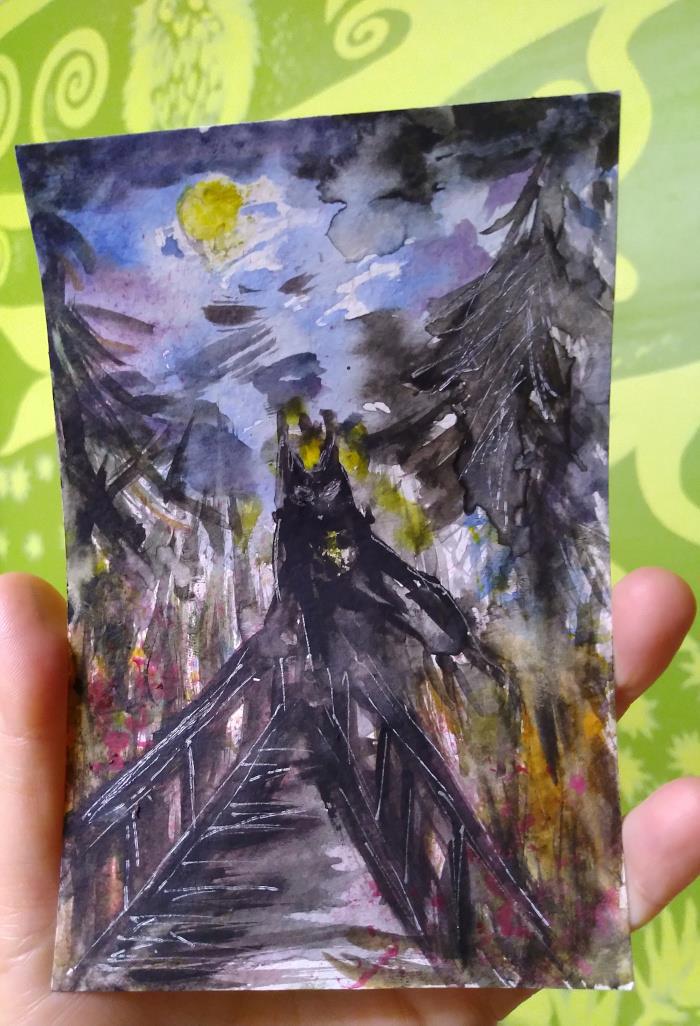 Потом дописался и сам рассказ. На предложение не заморачиваться и взять готовый рисунок на обложку, герой сказал "это у тебя вообще не волк, а чудо-юдо чешуйчатое. Нового рисуй". Посмотрела я в очередной раз на очешуенные акварели Яны, пооблизывалась. Вспомнила про атмосферные акварели Elian. Пооблизывалась ещё раз. Решила: а почему бы не поиграть с красками вживую?
