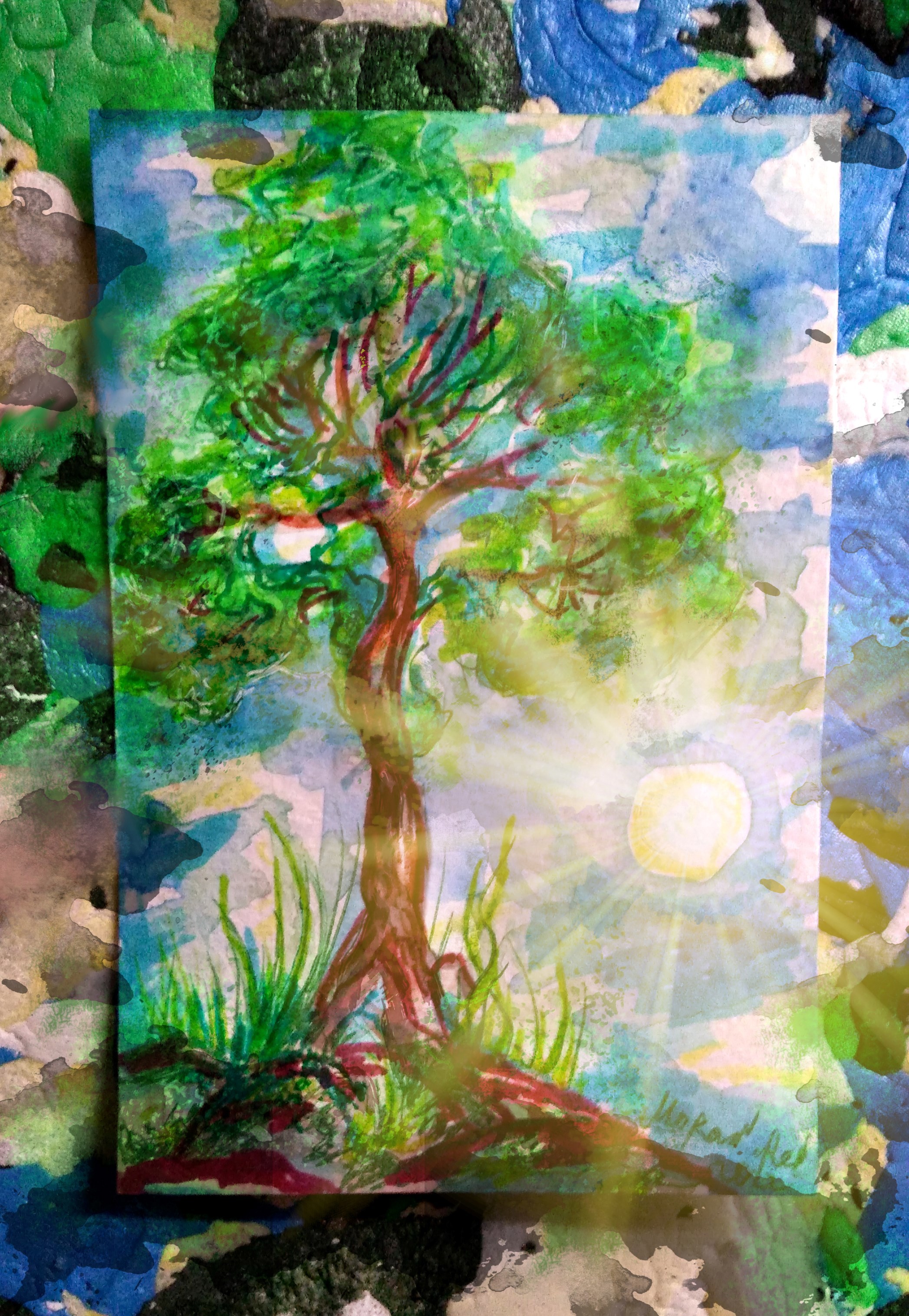 Но потом Ярополк начал выкладывать "Десятисловие земли", а мне с каждым новым постом икался неоцифрованный рисунок. Вот, достала. Сфоткала на изолоне (щит-стрелоуловитель), добавила света и поигралась с аква-кисточками в гимпе.