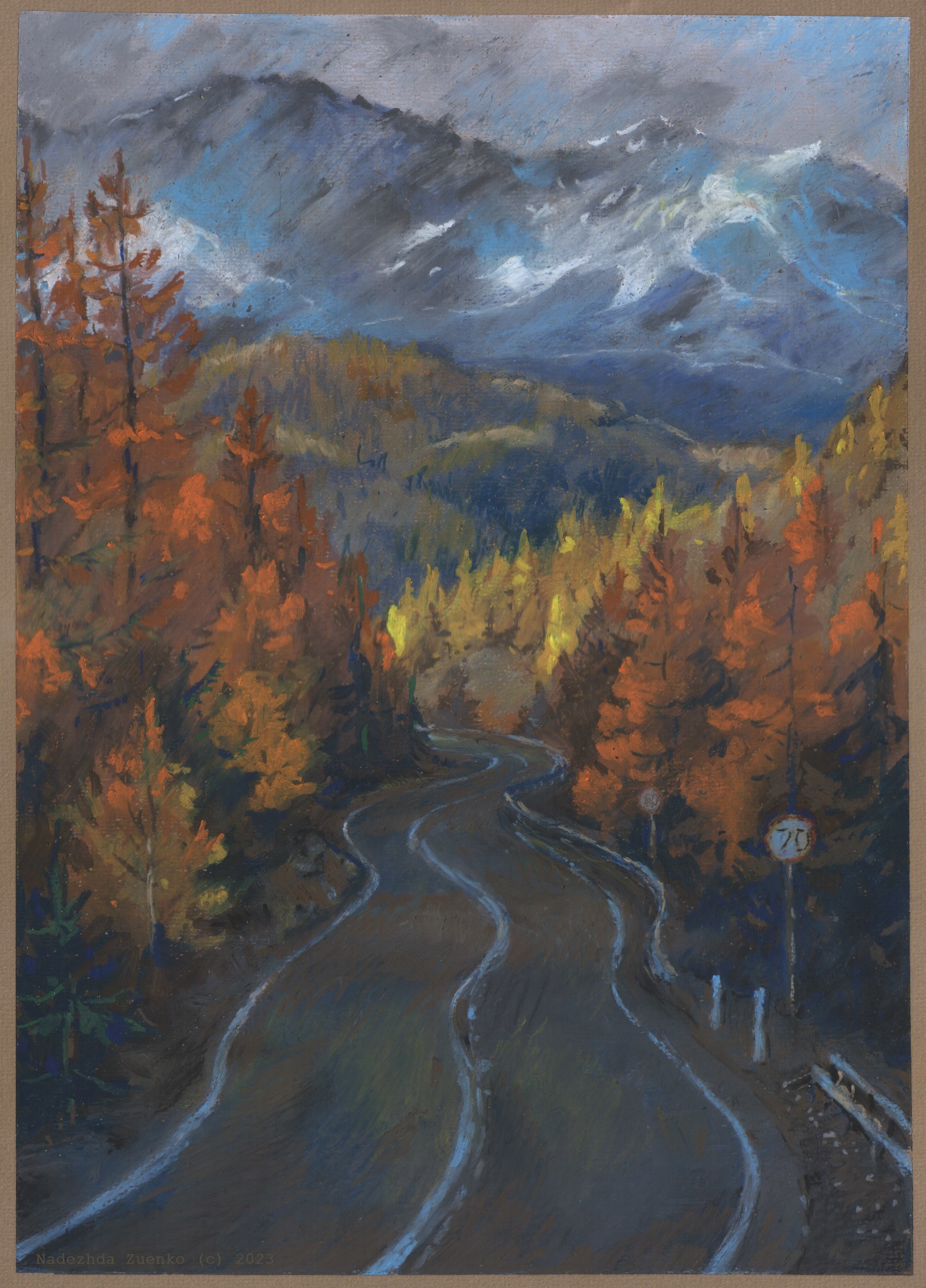 Пока прёт меня по масляной пастели, как удава по стекловате :). В этот раз решила попробовать что-то посерьезней. Лист А3, три вечера работы. В основном - Сонет, потом поверх Малевичем. Видела как-то, что масляную пастель можно корректировать пастельными карандашами, но у меня что-то никак. И вот - передний план так себе, особенно правая сторона. Маялась, маялась с ограждением и разметкой, да так и не вытянула нормально. А вот дальний и средний план мне понравились даже.