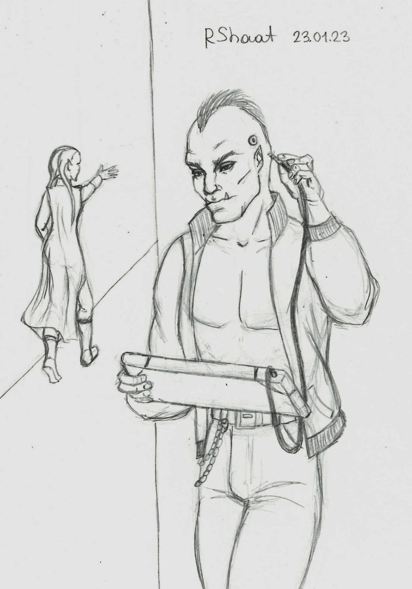 Аркада и Эш Автор: Rshaat Персонажи одной игры по Shadowrun подарок, рисунок карандашом 290 Пожаловаться