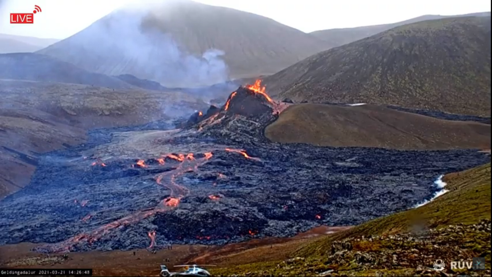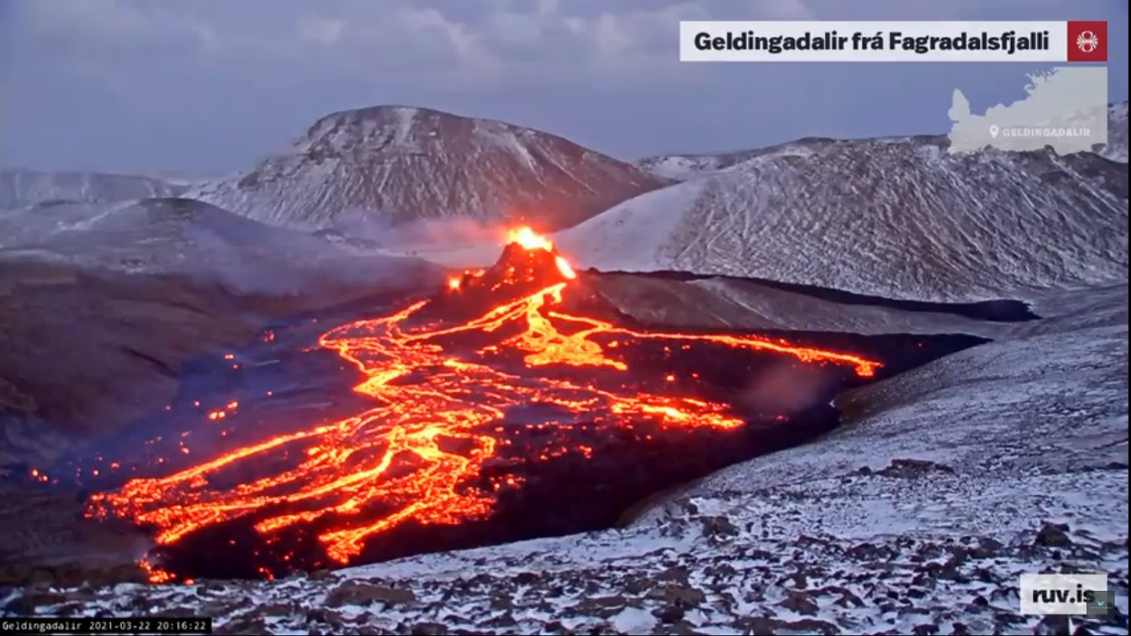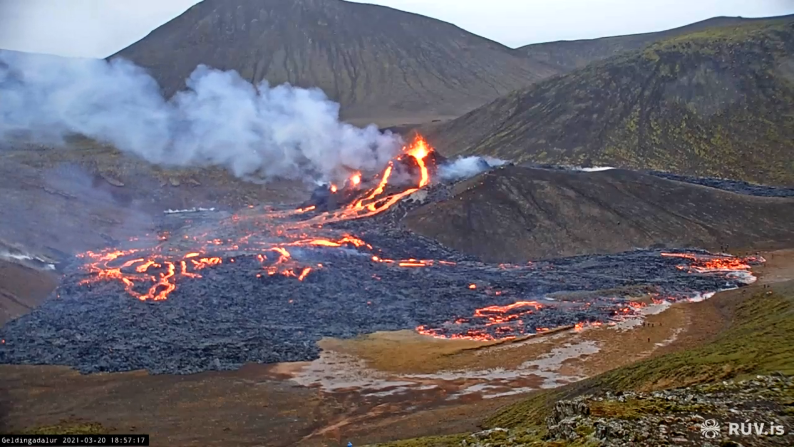Фаградасфьядль (Fagradalsfjall, «гора красивой долины») начал извергаться 19 марта 2021 года в 20:45 по местному времени. Начало извержения я "проспала", хотя вебкамера у меня работала постоянно. Извергался до 18 сентября того же года. Пока молчит, дремлет.