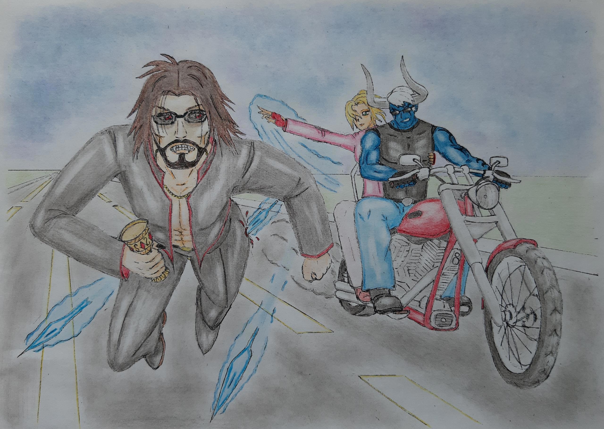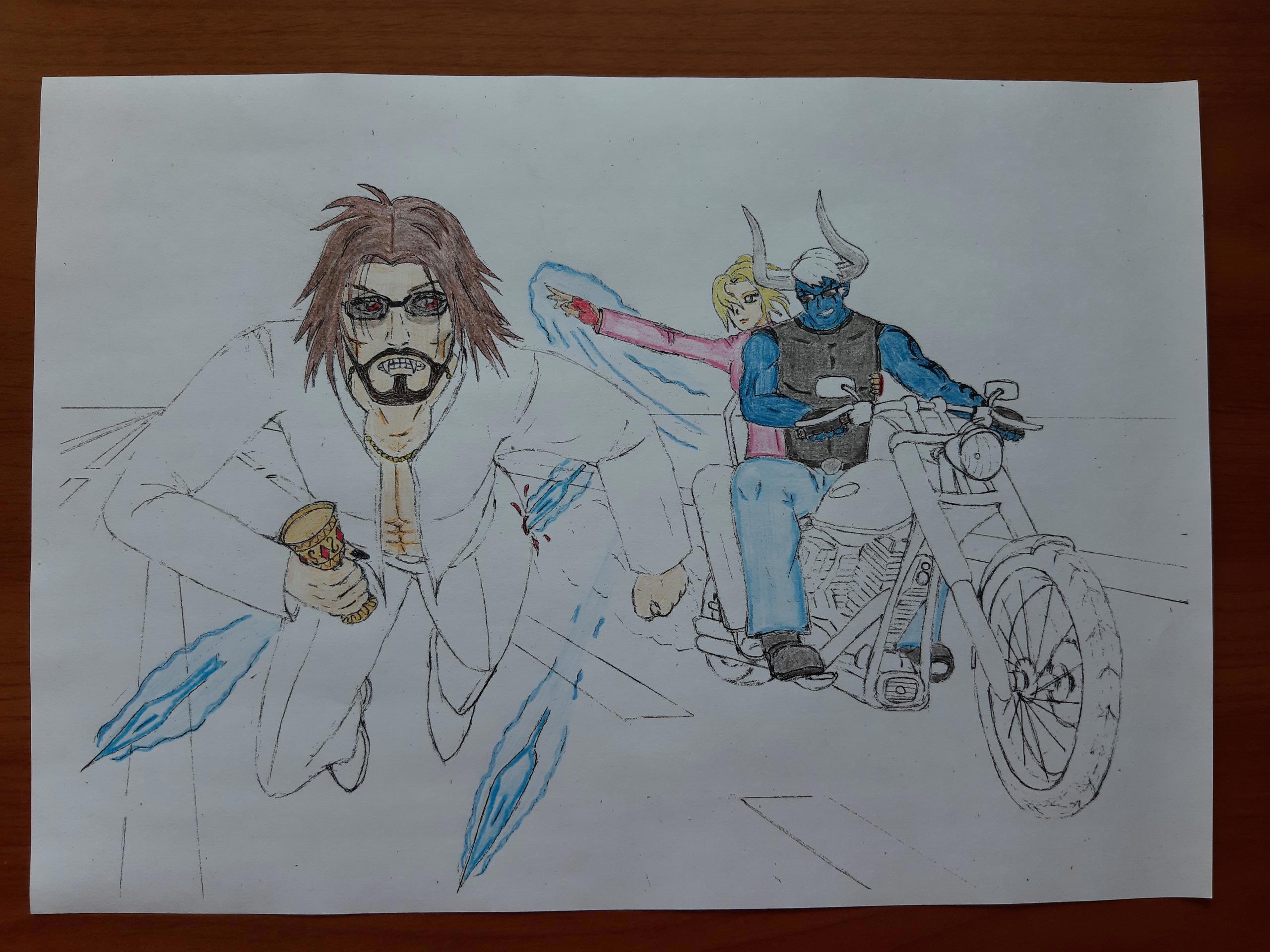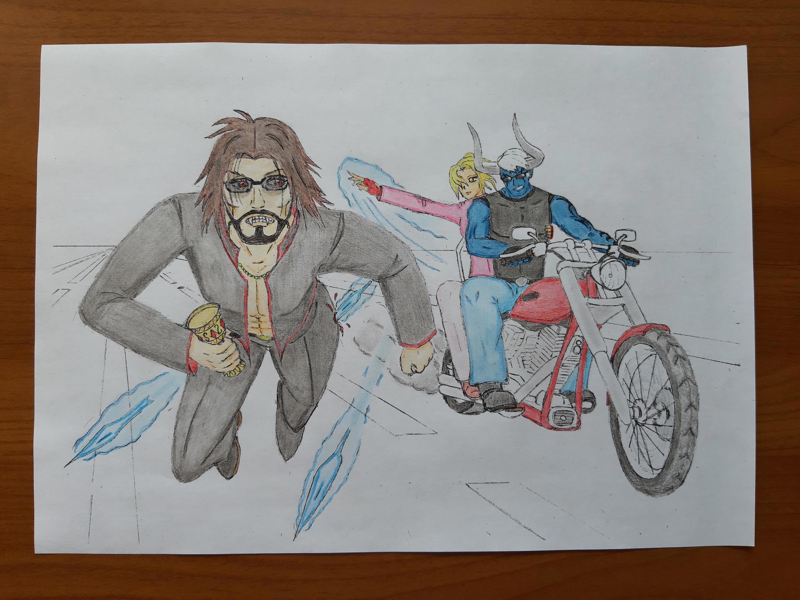 Погоня Автор: Demon Sanya Иллюстрация к рассказу "Дневник демона".Персонажи: Алекс, Мэлья и Александр.Карандаш.Июль 2020.Чёрно-белая версия... Этапы отрисовки... персонажи, погоня, эра водолея, demon sanya universe, демон, вампир, иллюстрация, мотоцикл 255 Пожаловаться